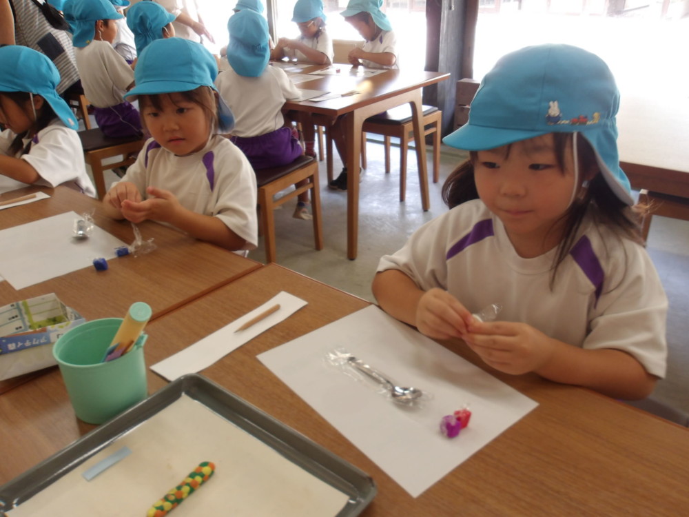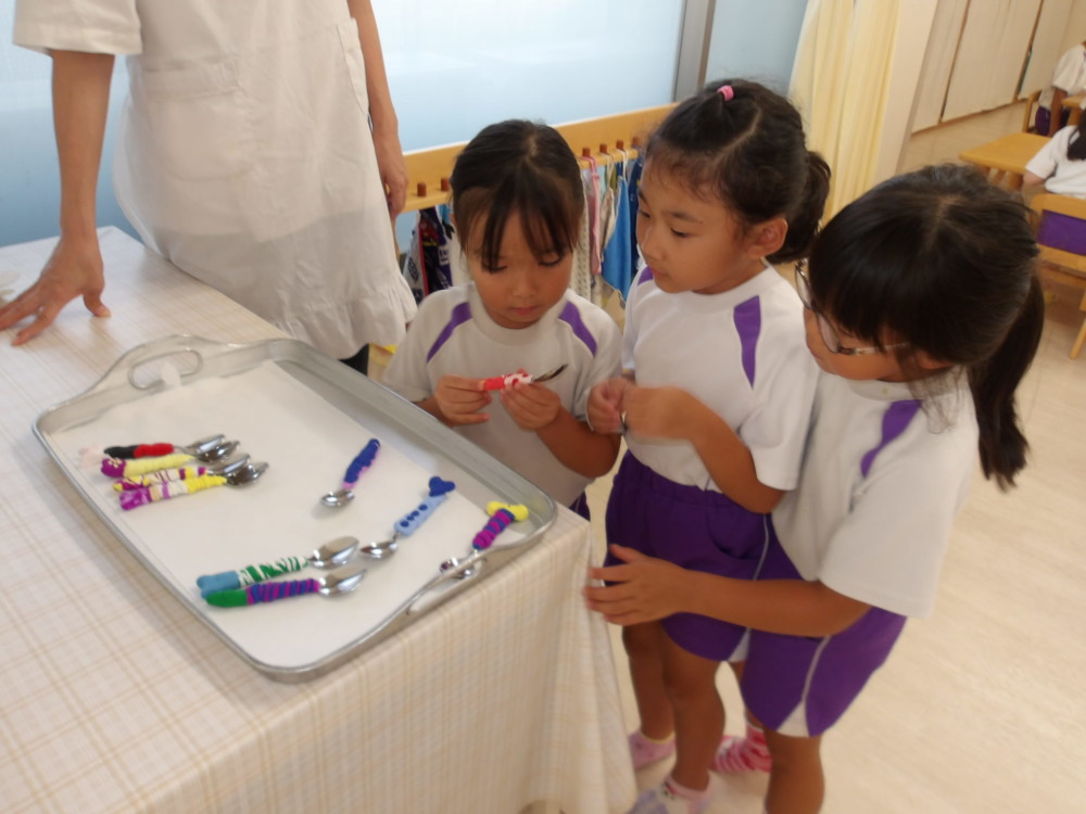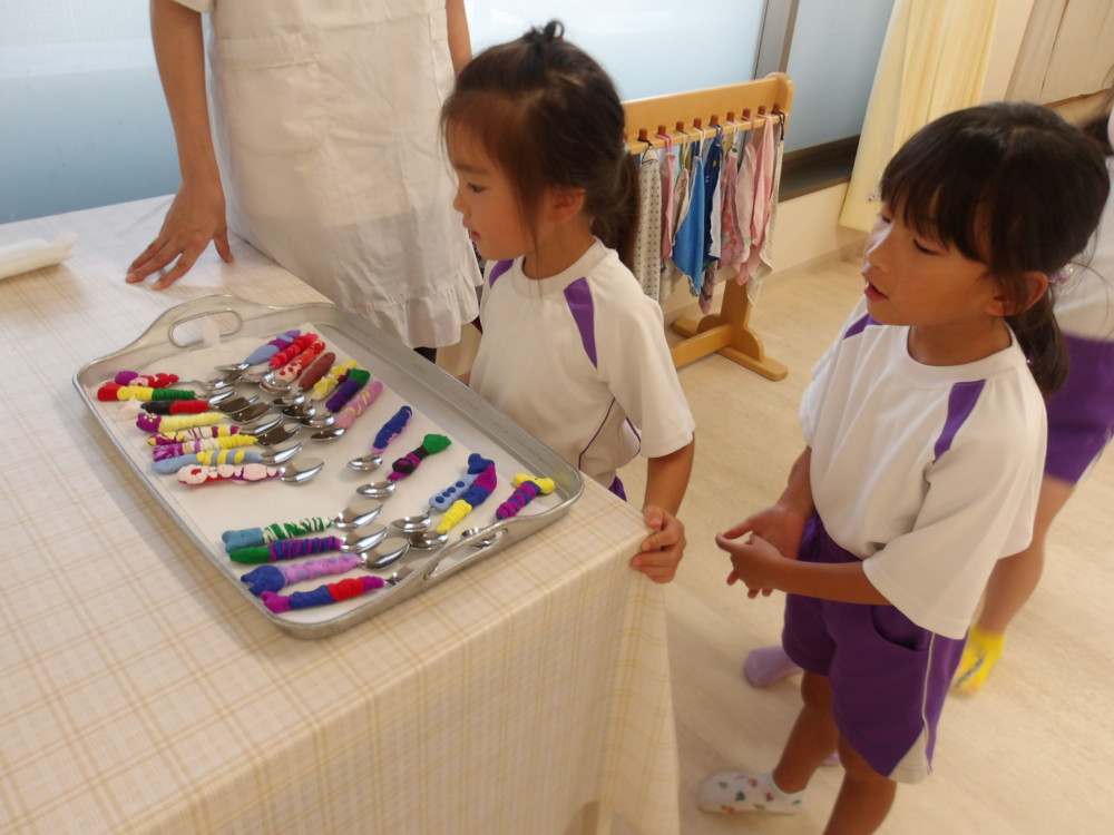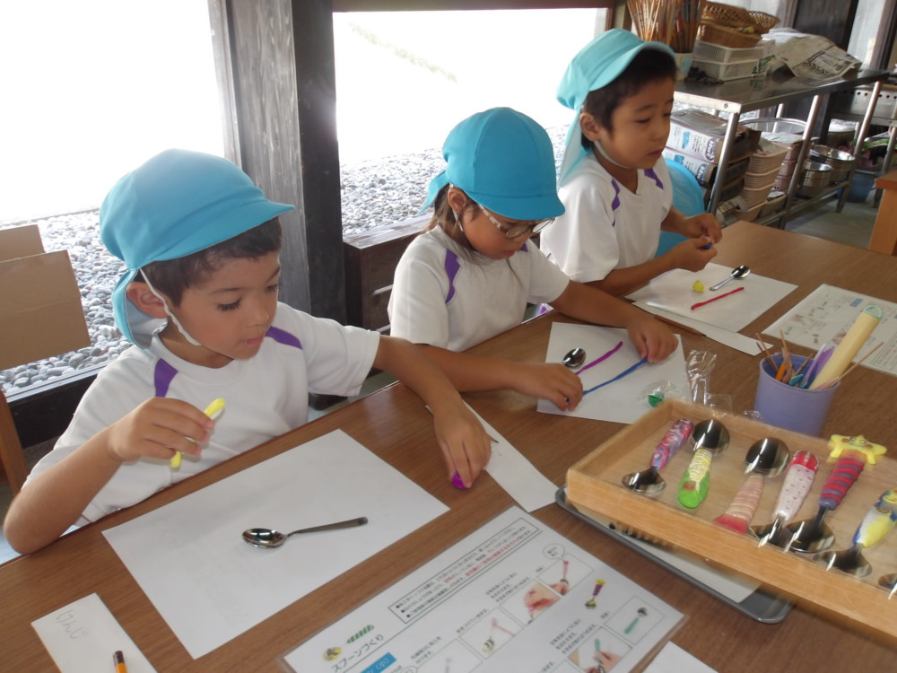さぁ、アクティ森ではスプーン作りを体験しました。さすがめろん組さん、きれいに仕上げましたね。