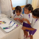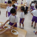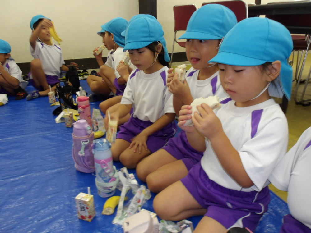 バスに乗ってアクティ森へ出発。前日までは、お泊り保育を憂鬱に感じていた子もあったようですが、アクティ森では、「お泊り保育って楽しいね」なんて会話も聞こえてきました。