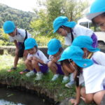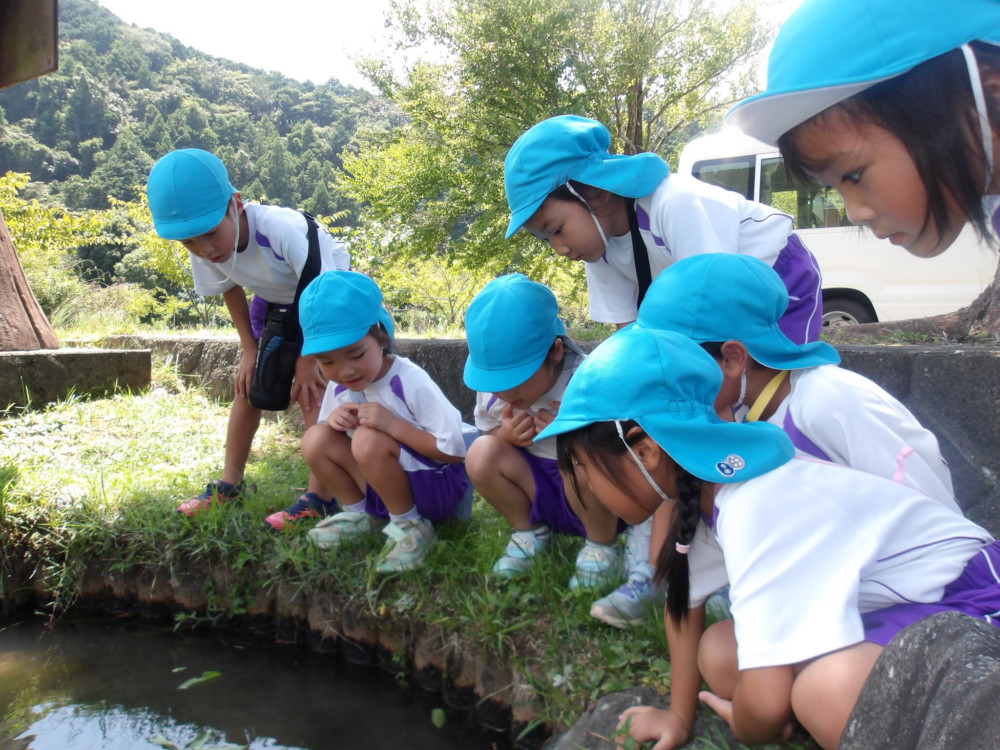 お昼ご飯はサンドイッチ。食後に少し散策を。池にてメダカにカエルにイモリを発見!