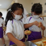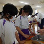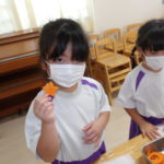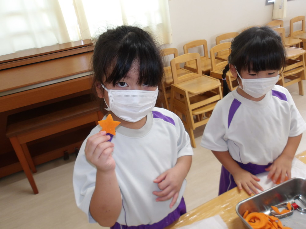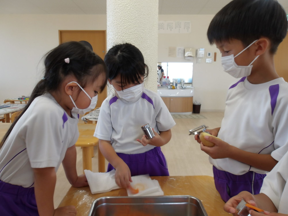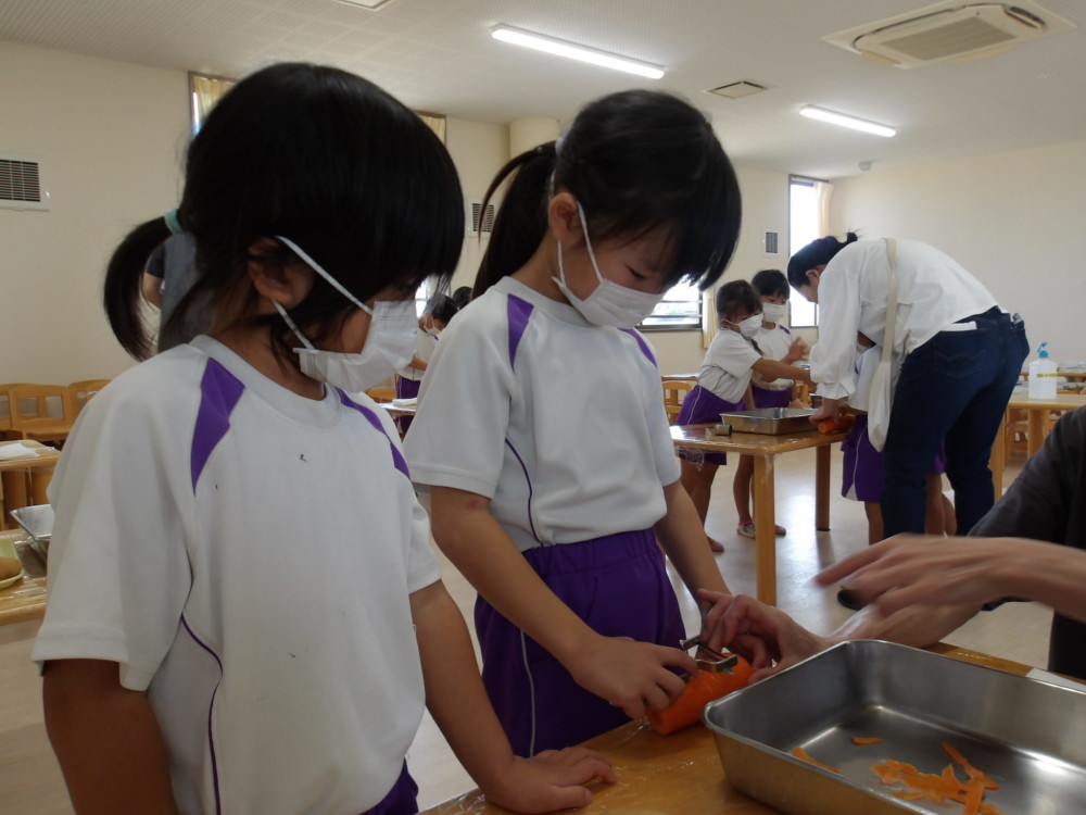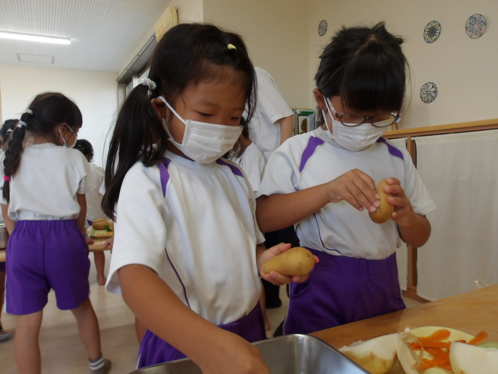 そして、いよいよクッキング。カレーの材料を皮むきします。