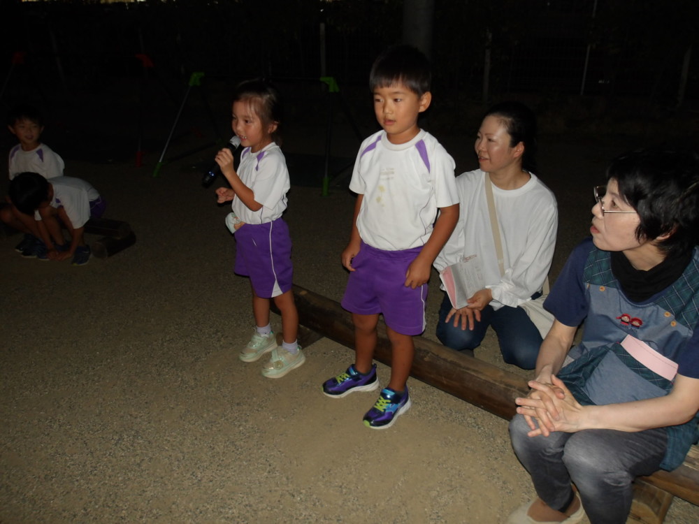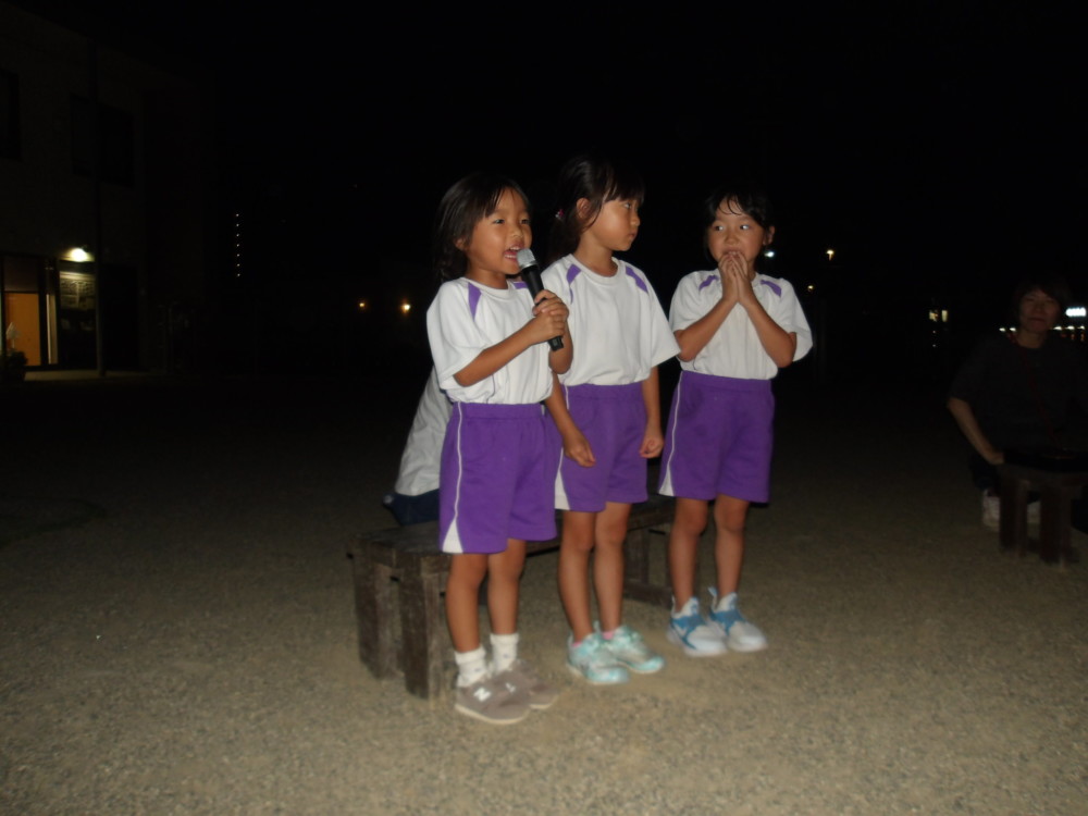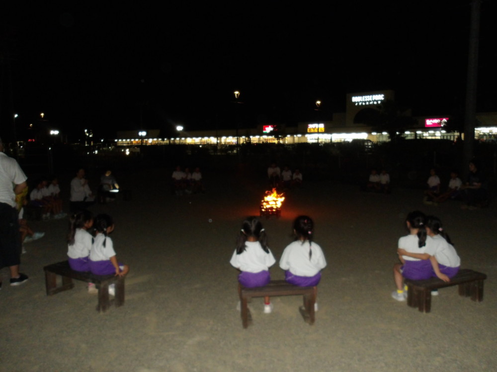 あたりが暗くなり、キャンプファイヤーがスタート。大きくなったら何になりたいかな?