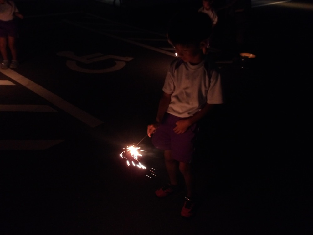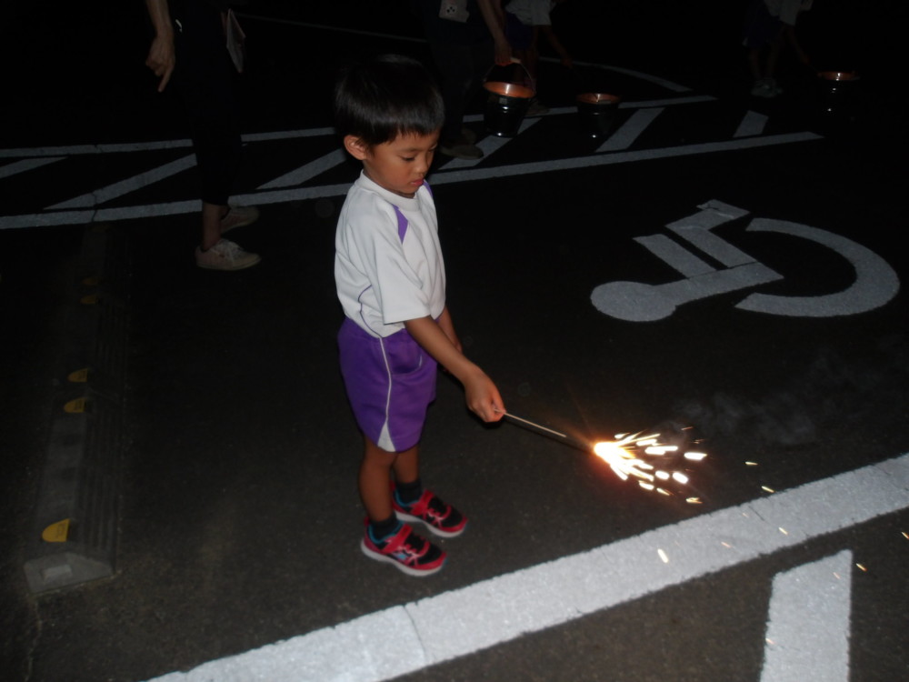 お待ちかねの花火。「手持ち」「吹き出し」「打ち上げ」。納涼祭の時より遅い時刻、日が落ちるのも早くなり、きれいな花火を楽しみました。