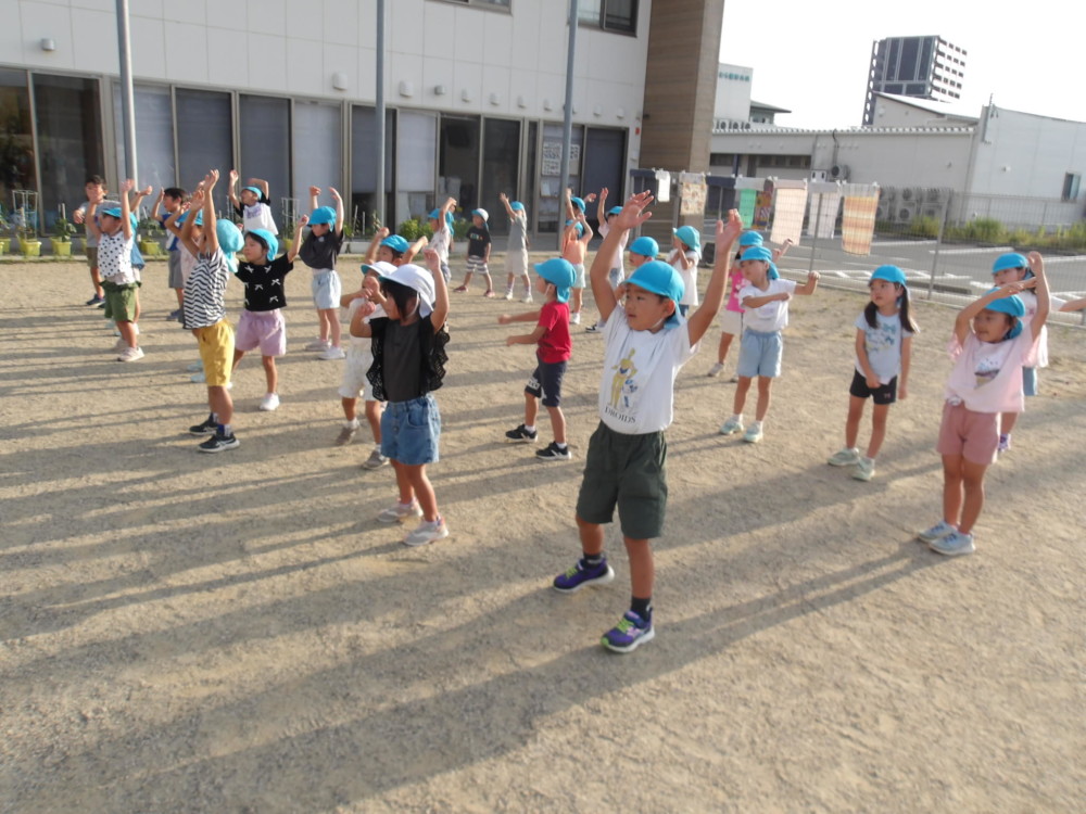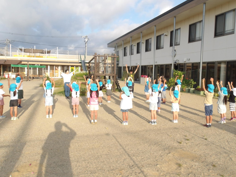 2日目。6時起床!といいつつ、早く目が覚めたので6時前より園庭へ。そして、夏の朝はラジオ体操でスタート。