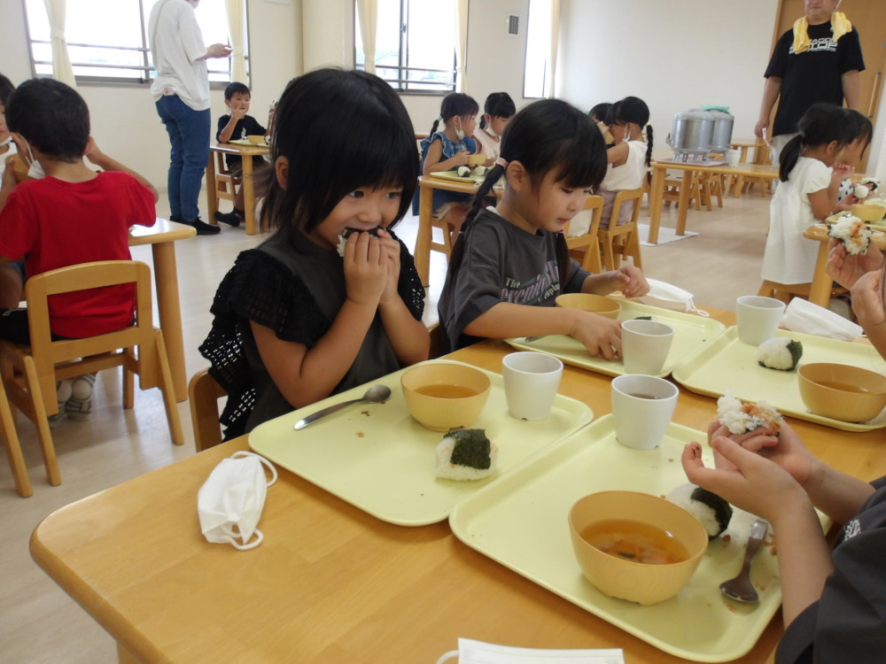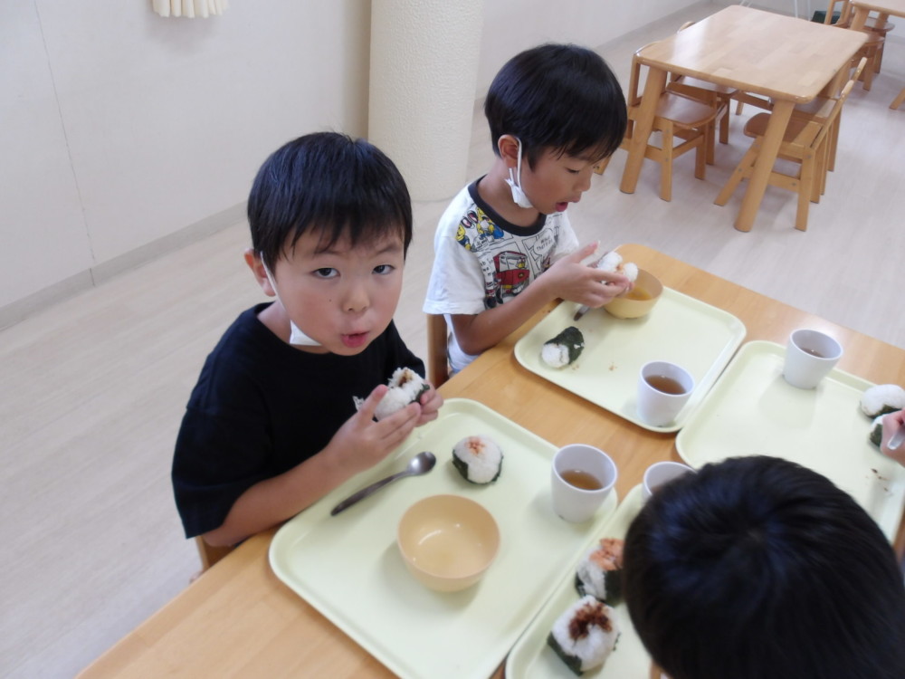 朝食はおにぎりづくり。バローでの買い物を思い出しながら食べました。