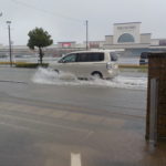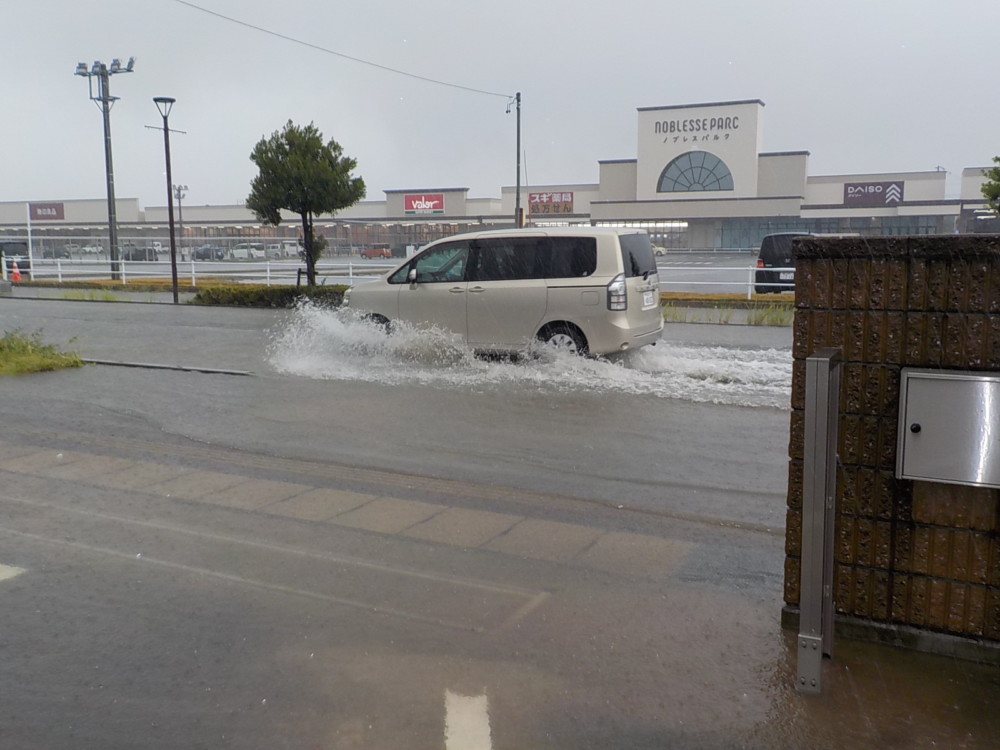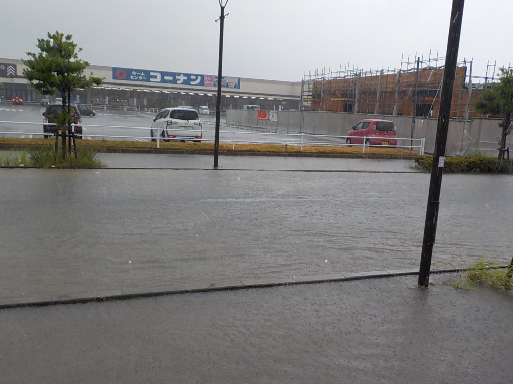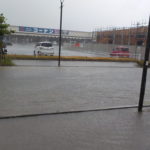 9月5日(金)台風15号の影響で、園の西側の高尾地下道が封鎖されました。これは、台風接近時によくあることです。しかし、今回は園の南側の道路も冠水、そして園の駐車場まで。新幹線も園の窓から見える場所で運行停止です。