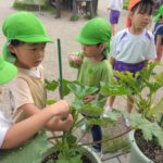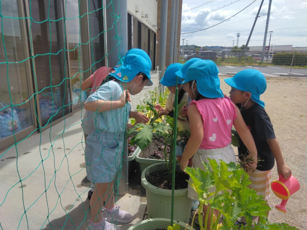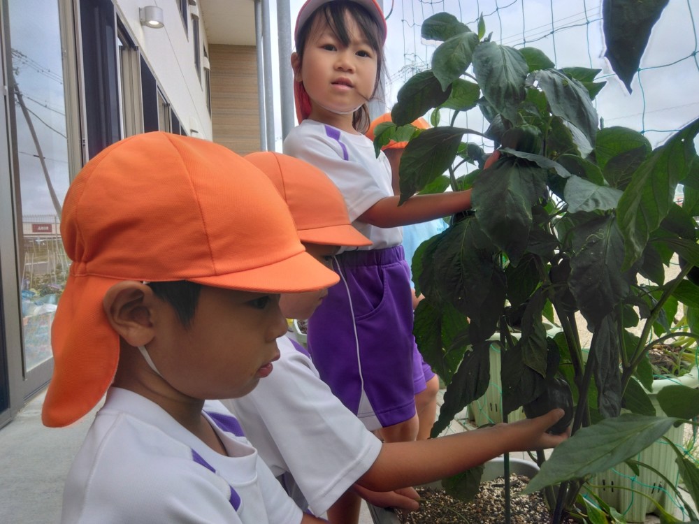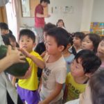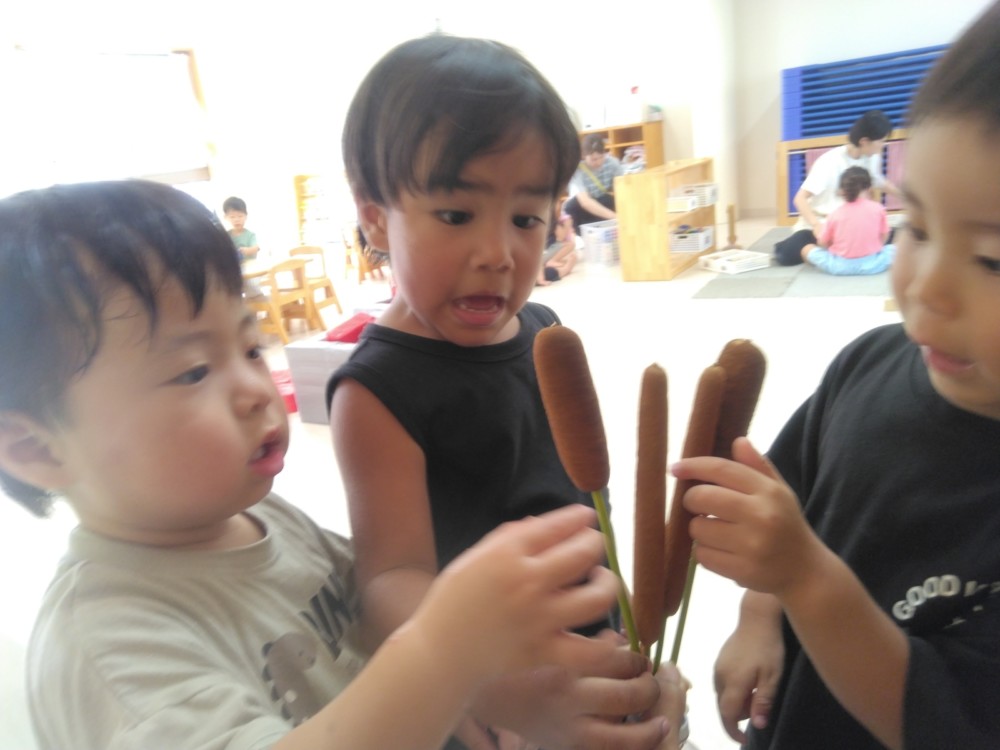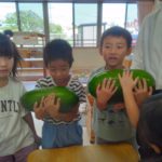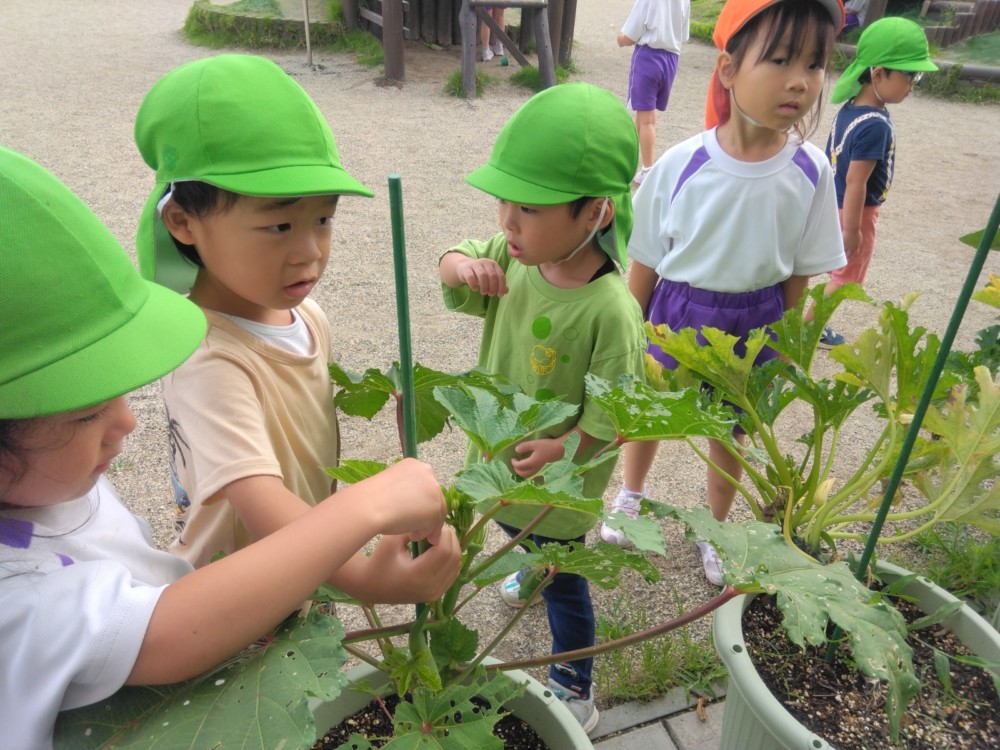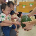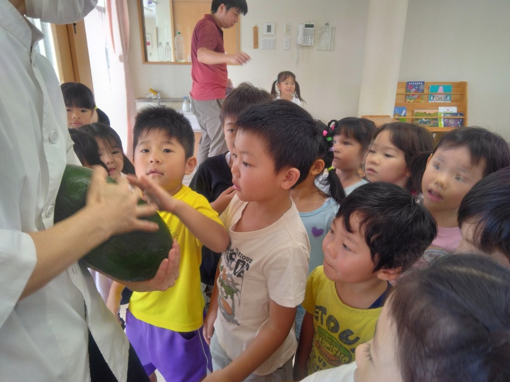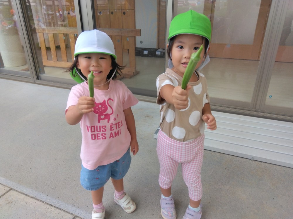 夏の野菜 part3 2025年09月08日 8月に入ってからも夏野菜の収穫は続きました。プランターだけでなく、めろん組さんの個人の鉢からオクラも収穫! ガマの穂 こちらの冬瓜は給食の食材で、納品されたものです。ちなみに「冬の瓜」と書きますが、旬は7~9月です。冷暗所に置けば冬まで日持ちすることから「冬瓜」と呼ばれるようになったそうです。大きいねぇ。