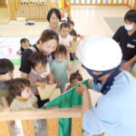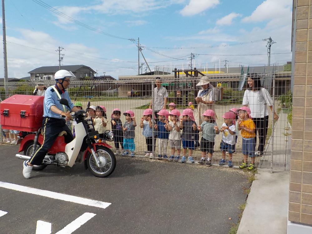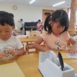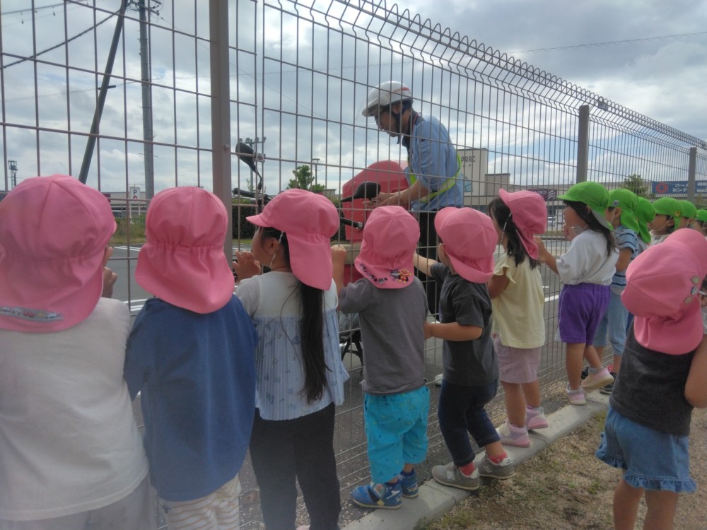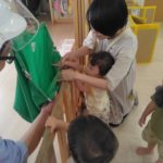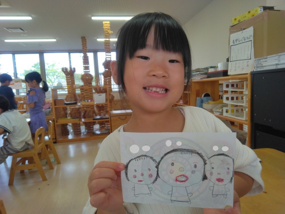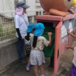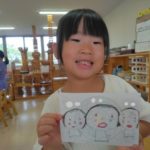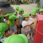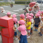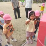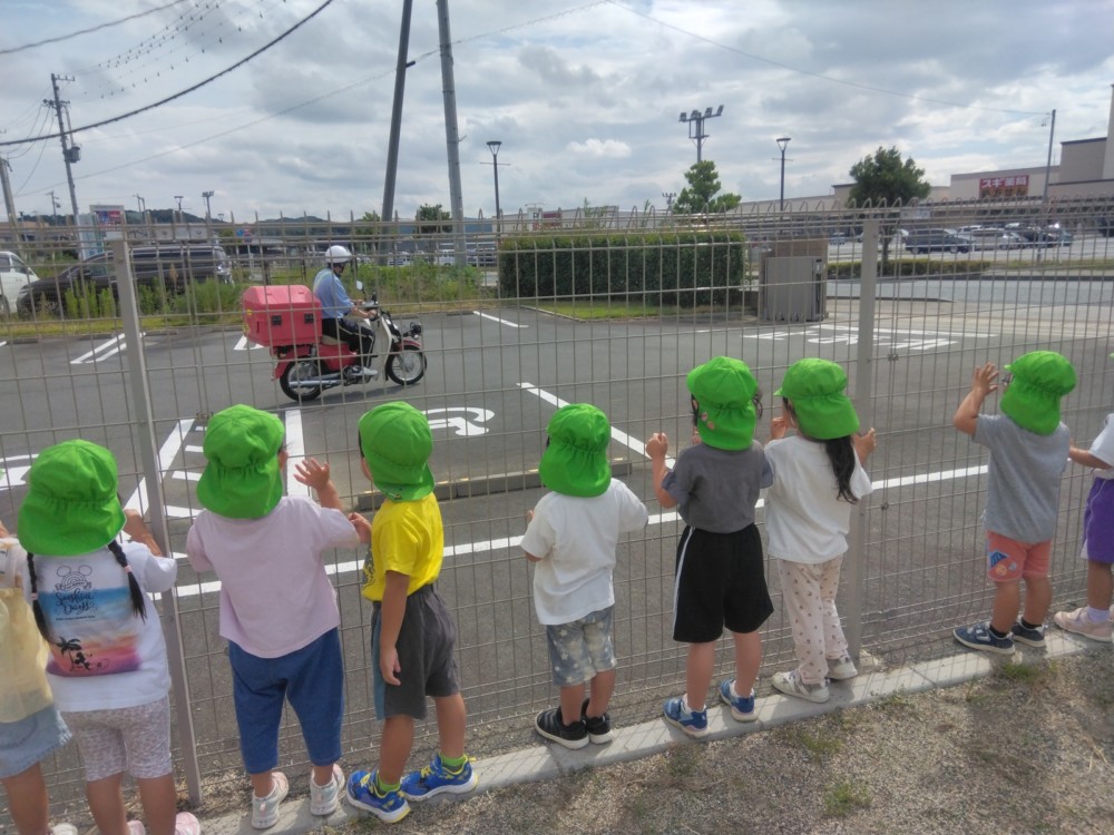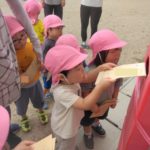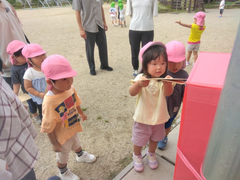 ばなな組さん、ぶどう組さんは、園庭に出てごっこ遊び用のポストに投函。すぐ回収してくれました。