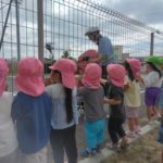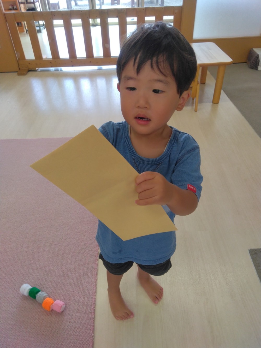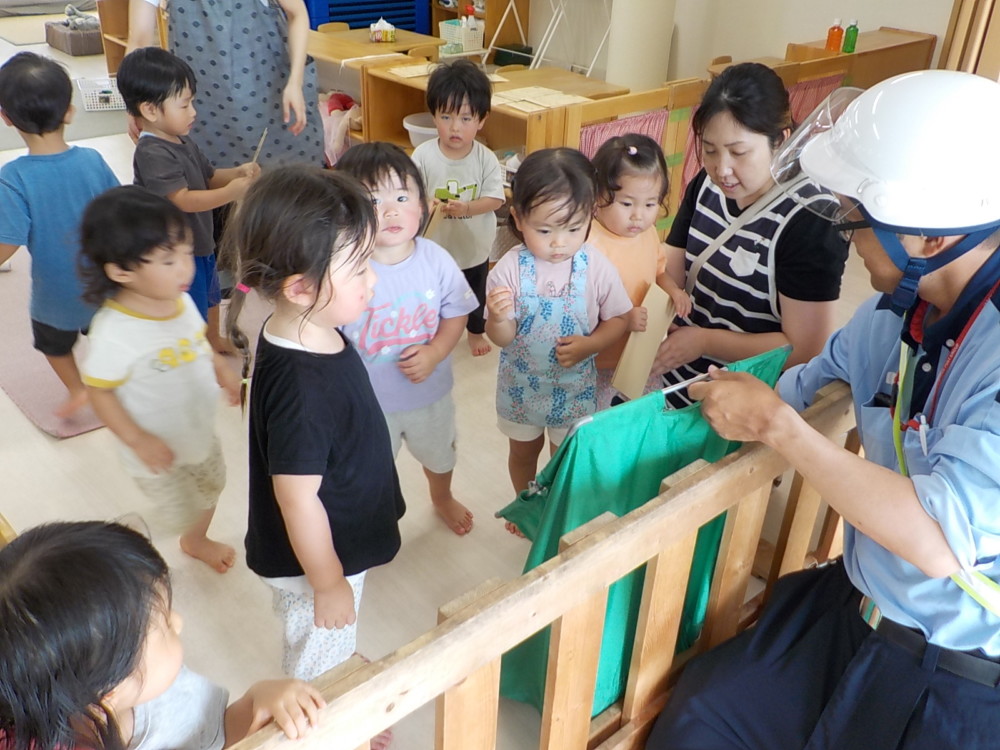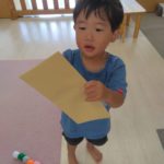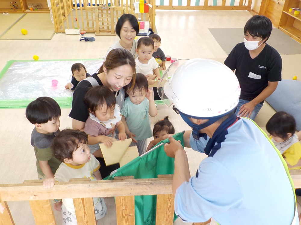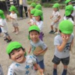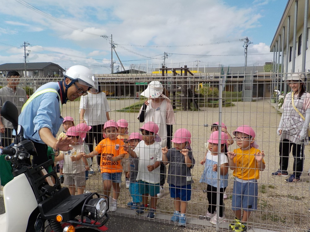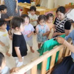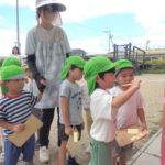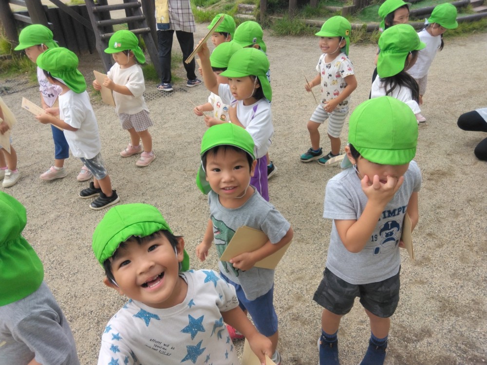 ばなな組さん、ぶどう組さんは、園庭に出てごっこ遊び用のポストに投函。すぐ回収してくれました。