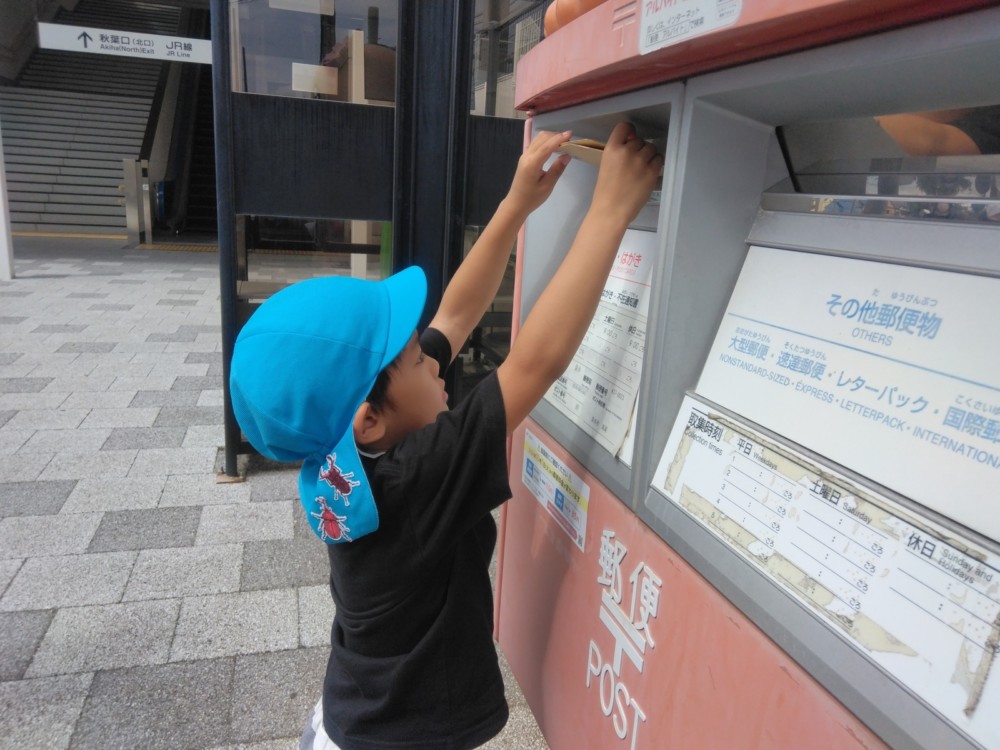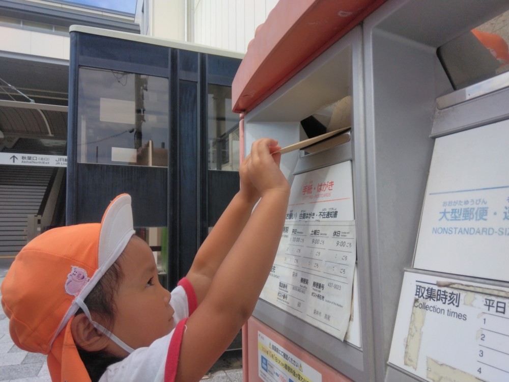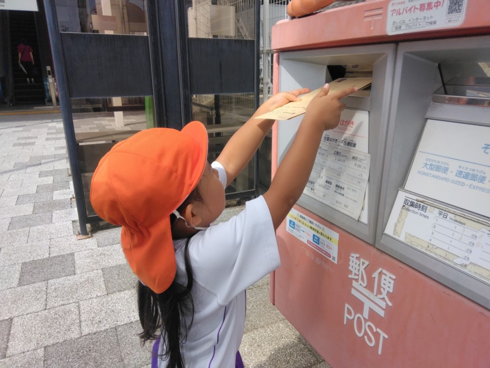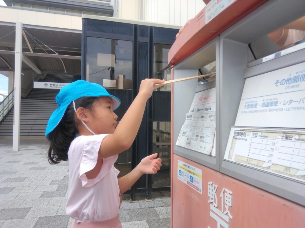 みかん組さん、めろん組さんは、駅の南にあるフッピーのポストへ。自分の手で投函しました。