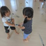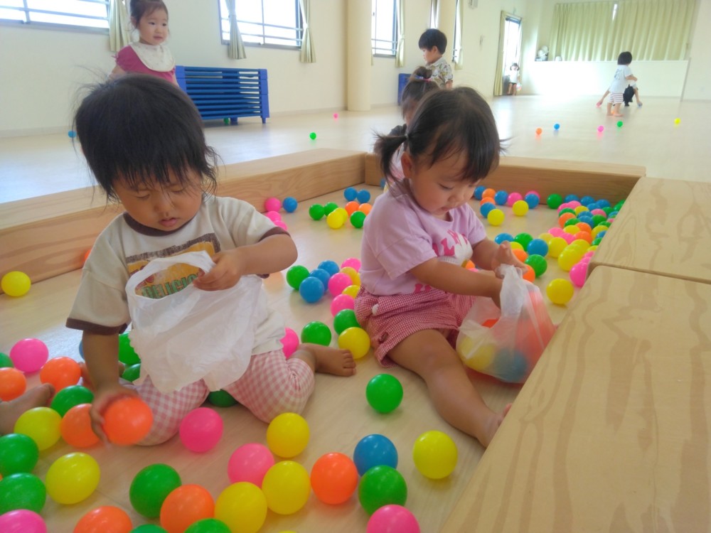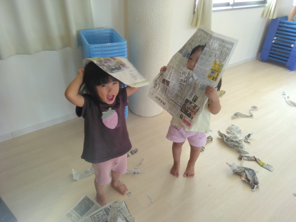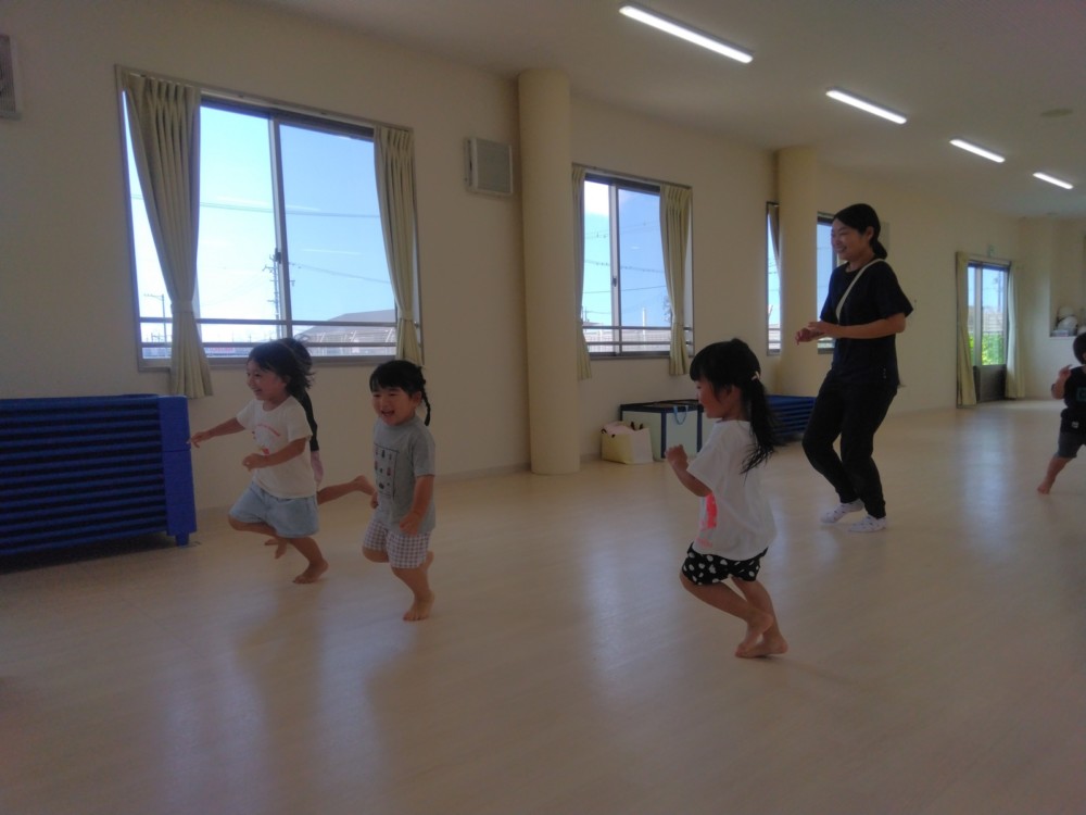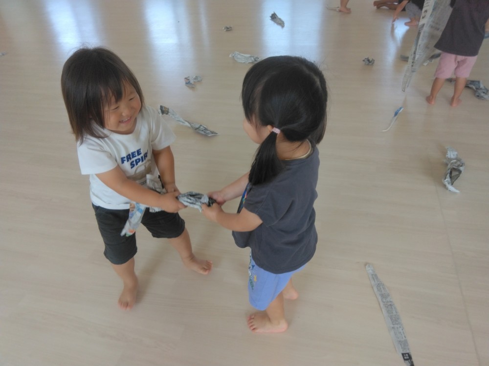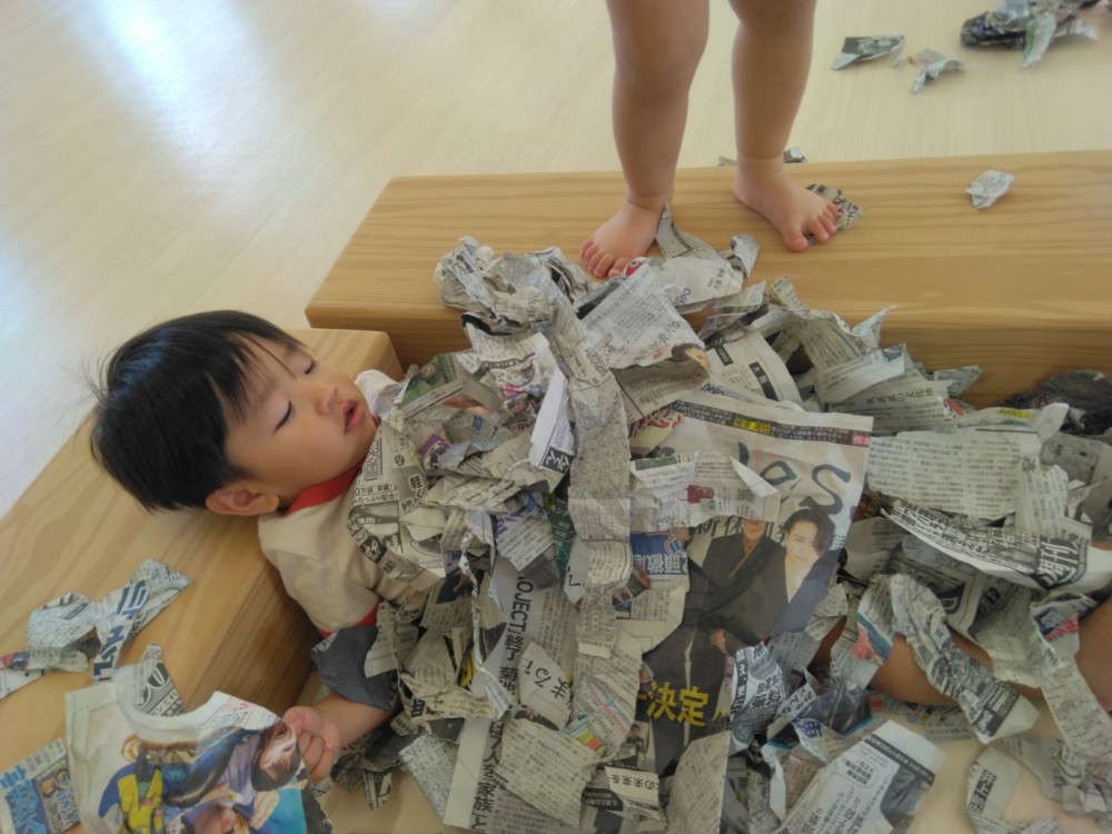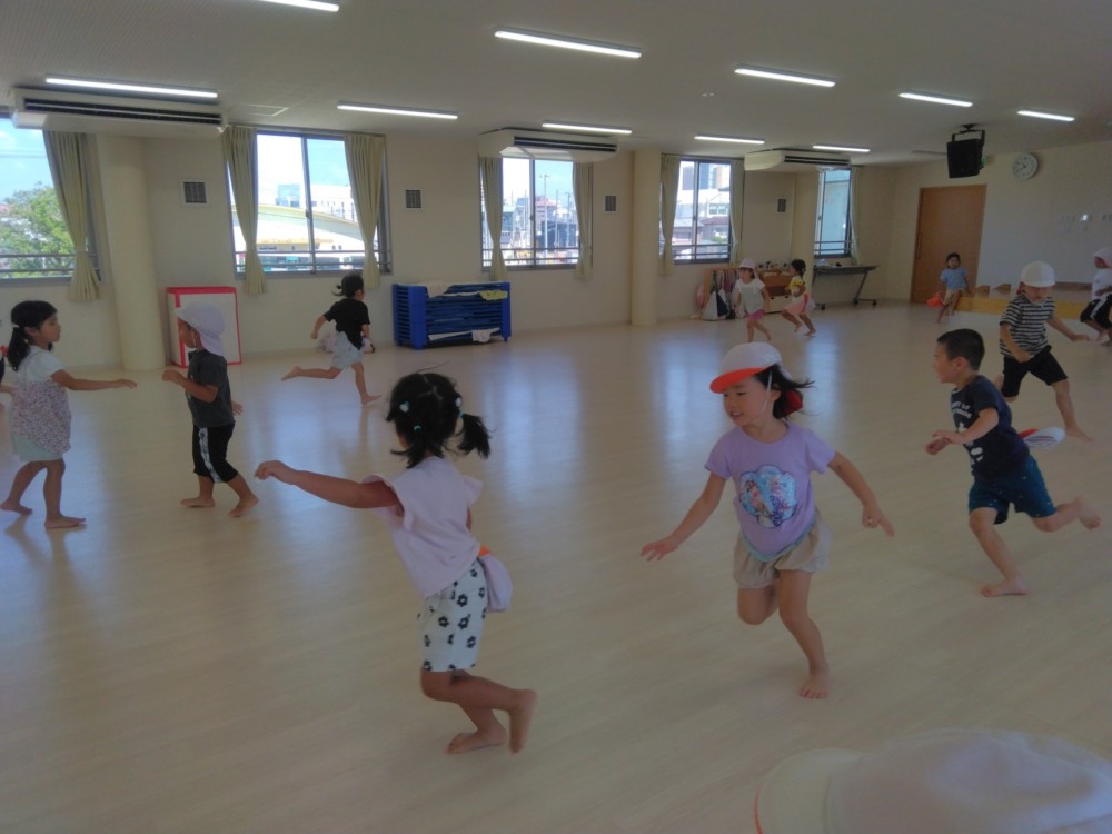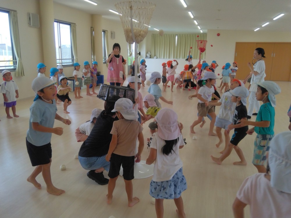 真夏の遊戯室 2025年09月17日 今年の夏も、熱中症警戒アラートが連日発表されました。例年よりプール終了を1週間延ばしましたが、それでもプール・水遊びの機会は…。そのため、エアコンの効いた涼しい遊戯室で遊びました。 新聞紙、風船、ボールを使ったり、集団遊びで大きく体を使ったり。さすがにエアコンの効いた涼しい遊戯室でも汗をかいて遊んでいます。