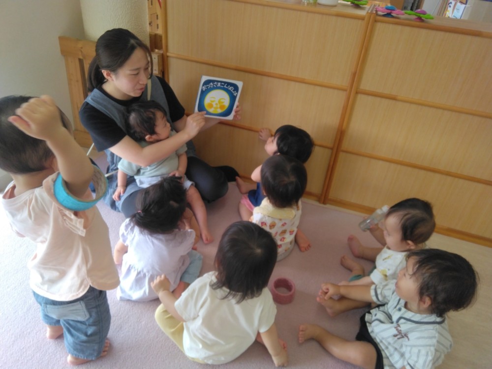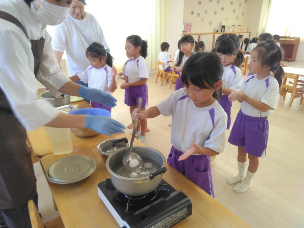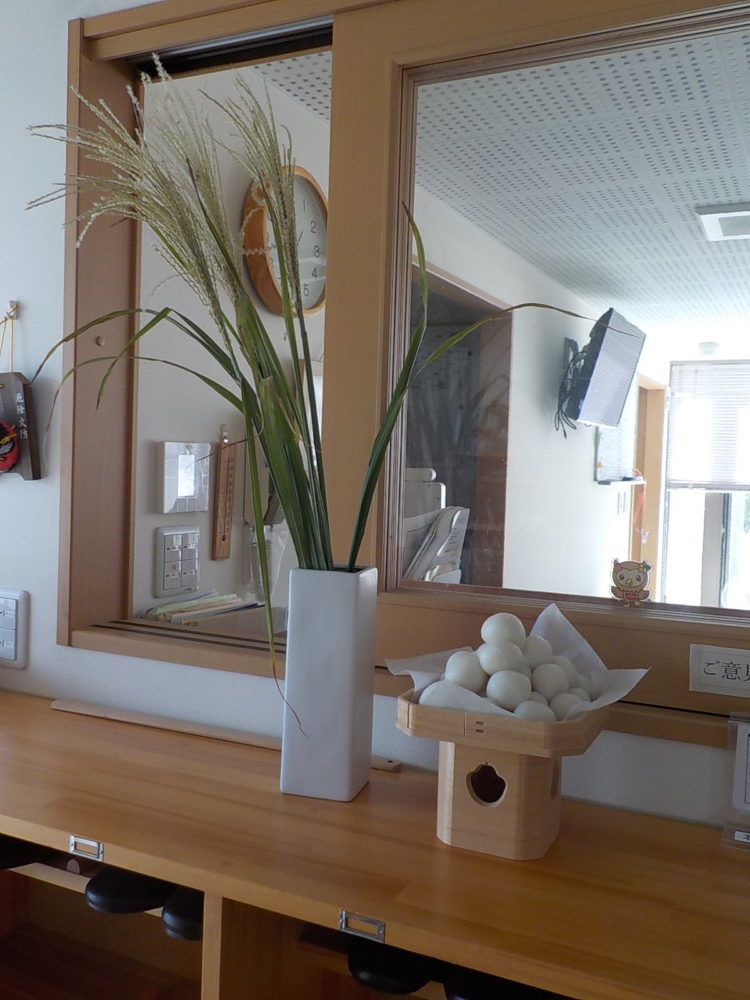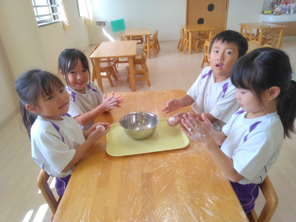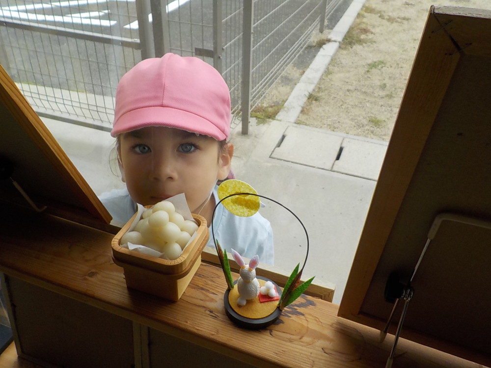 もうすぐ十五夜 2025年10月03日 今年の十五夜は10月6日(月)です。めろん組さんは、2日(木)にお供え用のお月見団子を作りました。 早速、玄関に、「ススキ」と「お月見団子」を飾りました。絵本でも「おつきさま」が登場しています。 6日(月)のおやつは、「お月見かぼちゃドーナツ」の予定です。お月さま、今年はよく見えるかな? ちなみにトップ画像は一昨年の十五夜です。