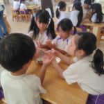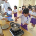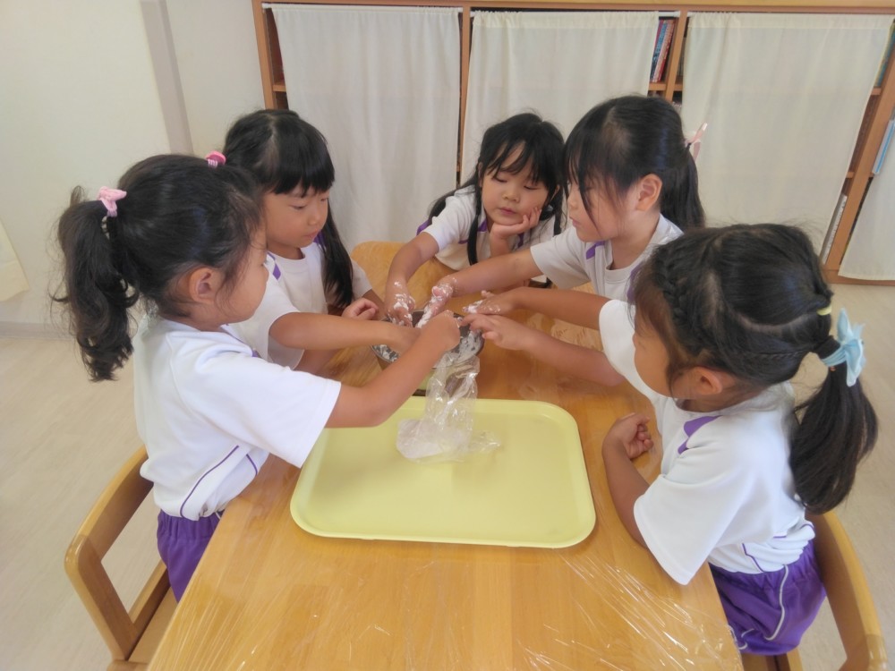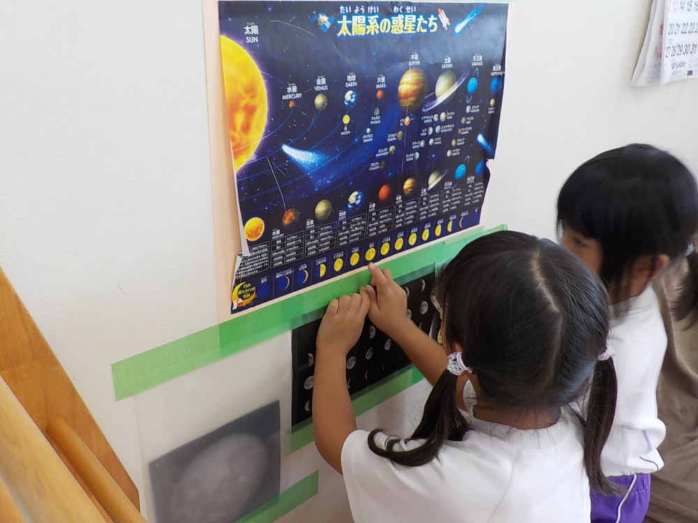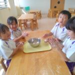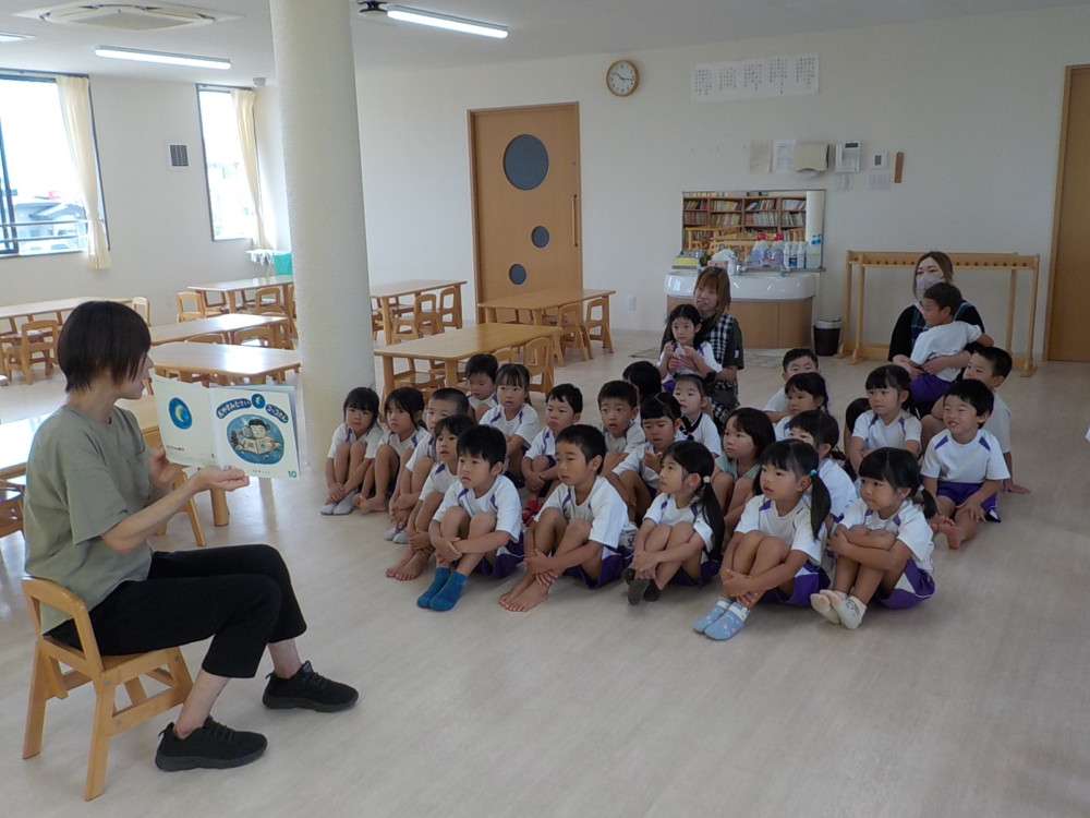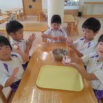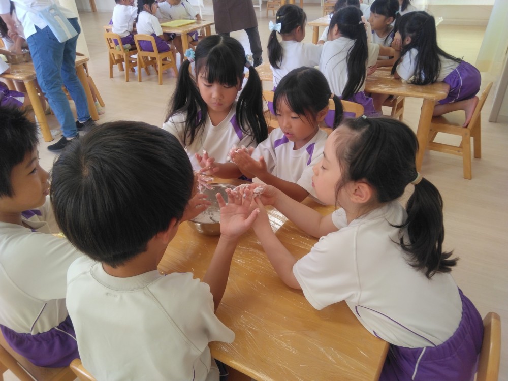 もうすぐ十五夜 2025年10月03日 今年の十五夜は10月6日(月)です。めろん組さんは、2日(木)にお供え用のお月見団子を作りました。 早速、玄関に、「ススキ」と「お月見団子」を飾りました。絵本でも「おつきさま」が登場しています。 6日(月)のおやつは、「お月見かぼちゃドーナツ」の予定です。お月さま、今年はよく見えるかな? ちなみにトップ画像は一昨年の十五夜です。