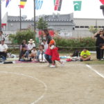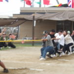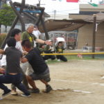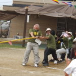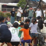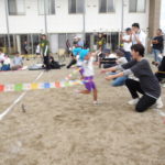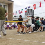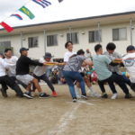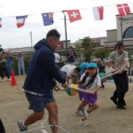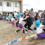 「みんなで つな げよう」保護者競技の綱引きです。小学生vs職員のエキシビジョンマッチもおこなわれました。大人が真剣に頑張る姿は、子どもたちの心に熱く刺さります!