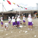 「まじめ忍者」みかん組の玉入れです。曲に合わせてダンス&玉入れです。