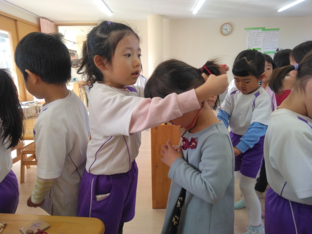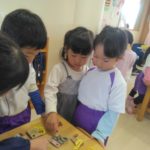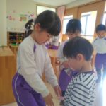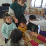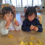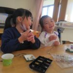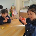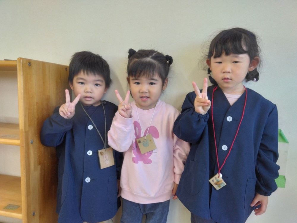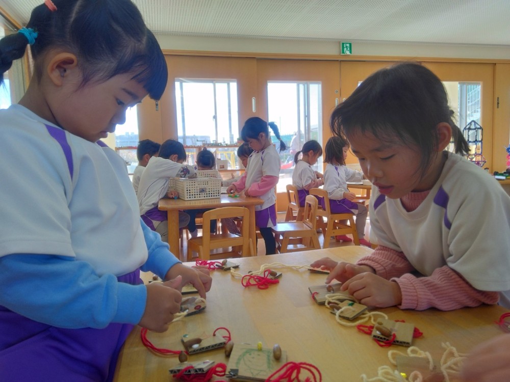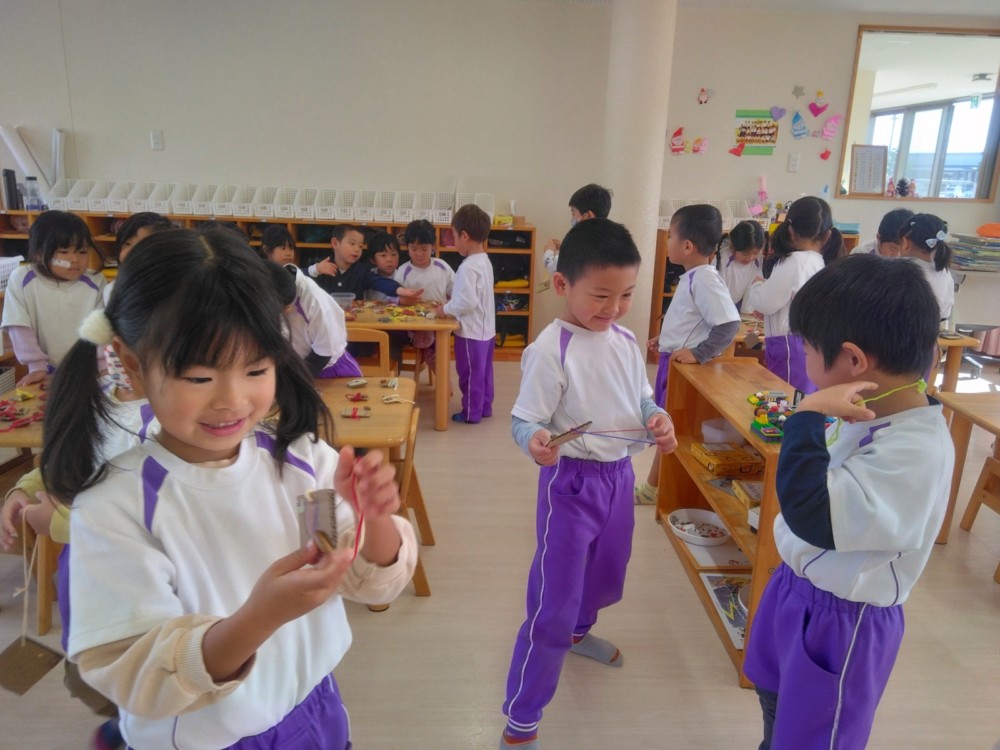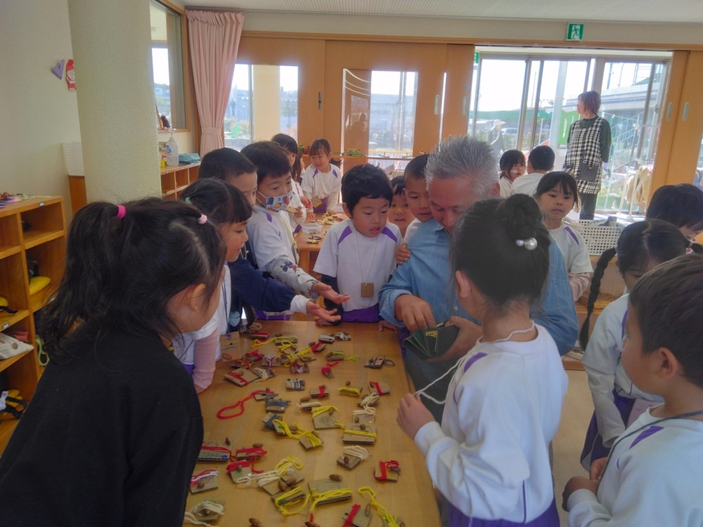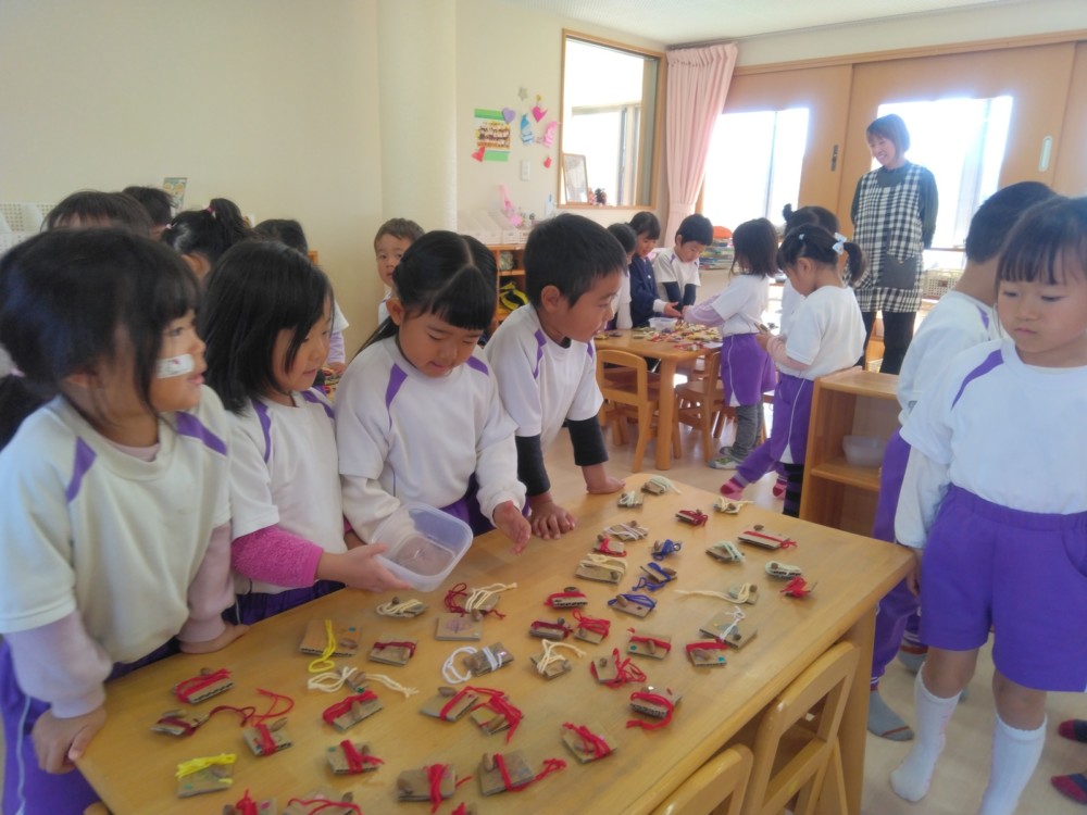 みかん組さんでは、自然物を使ってペンダントを作りました。ばなな組さん、ぶどう組さんが買いに来てくれましたよ。