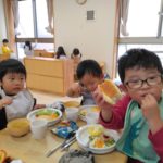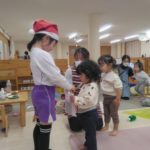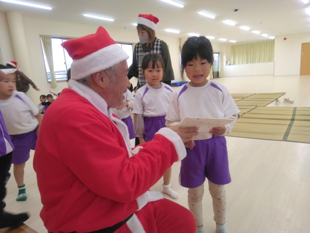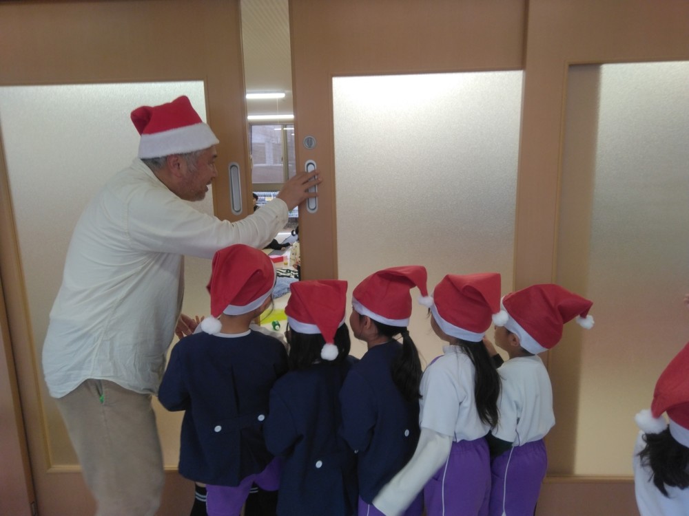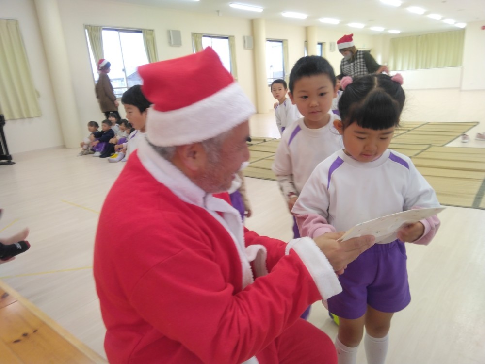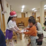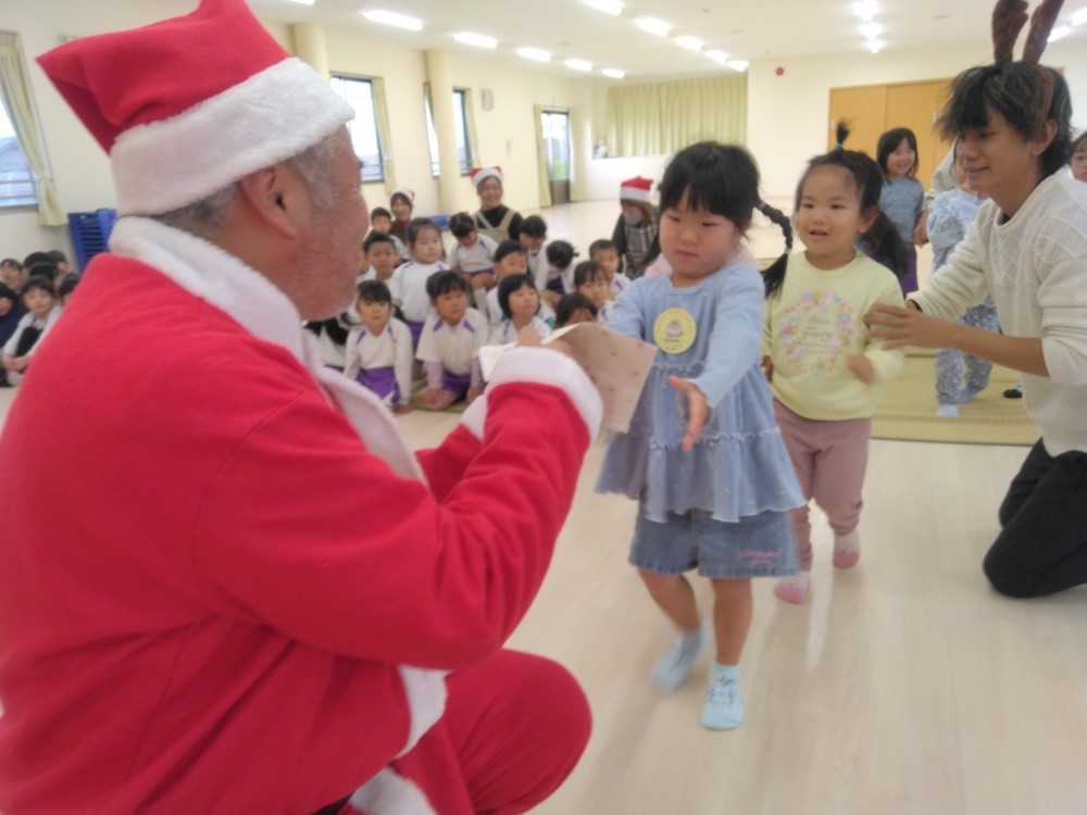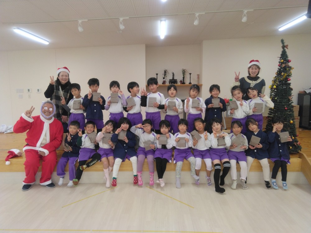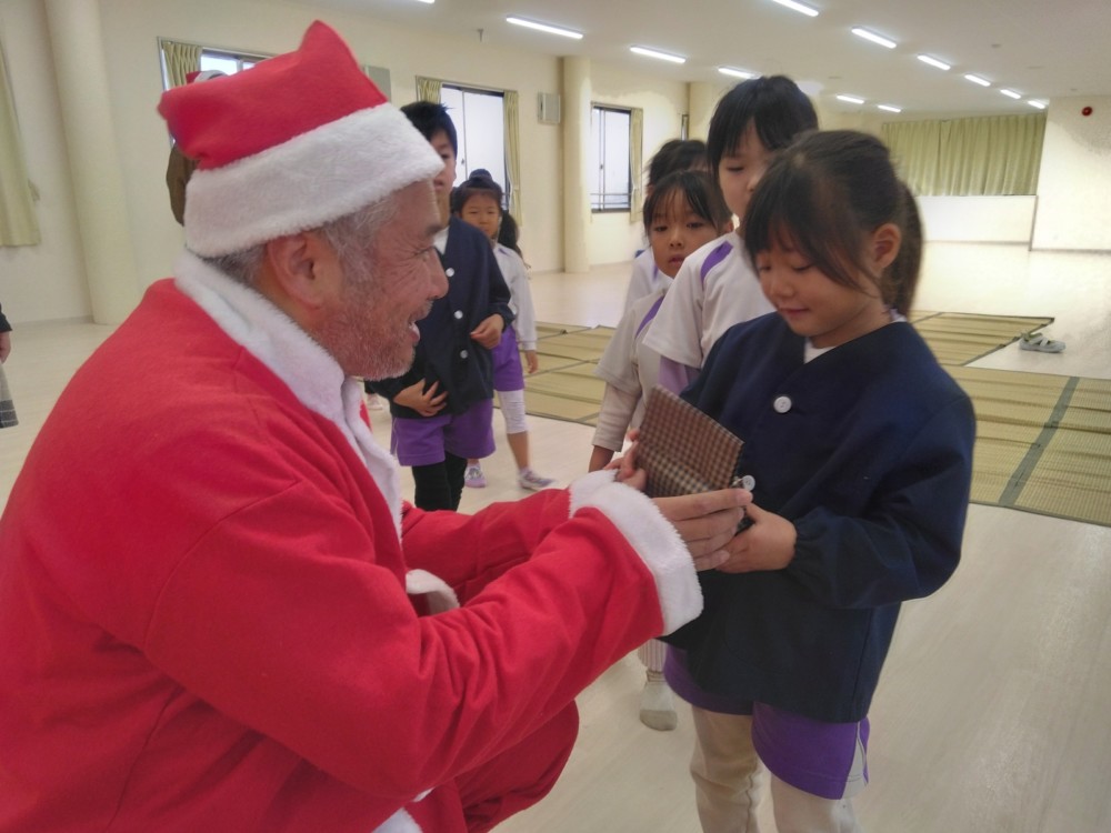 いちご、さくらんぼ、ばなな組さんもプレゼントをもらいました。めろん組さんが、サンタに扮して手伝ってくれましたね。