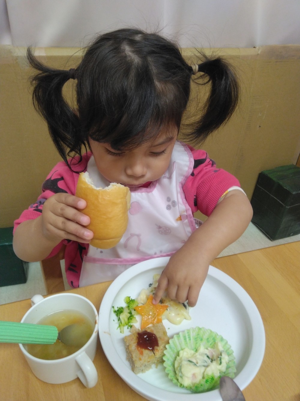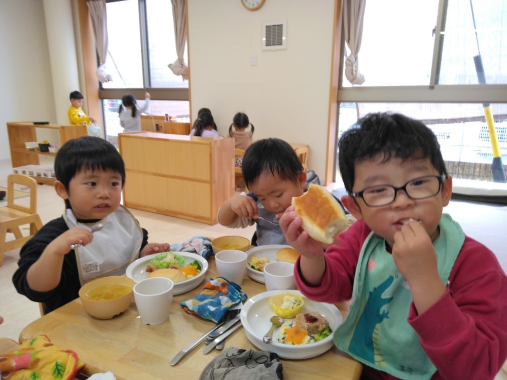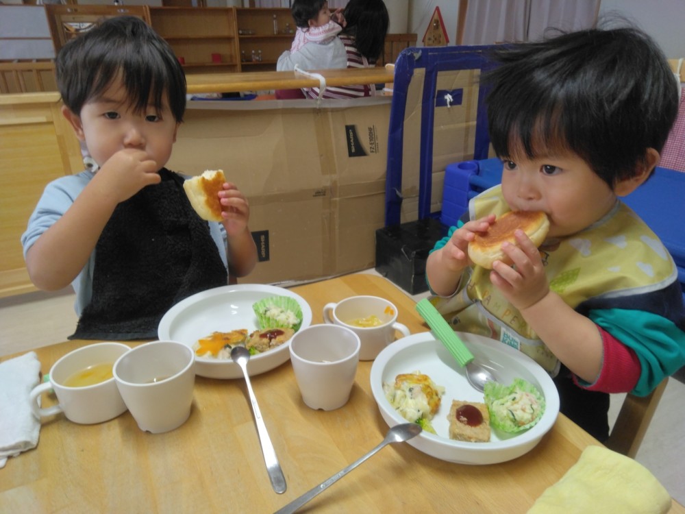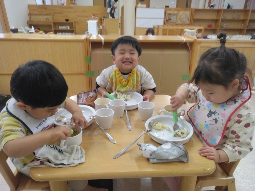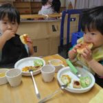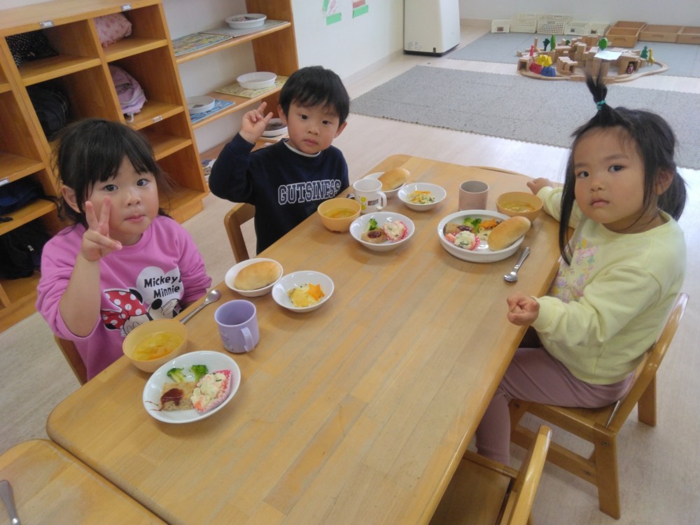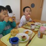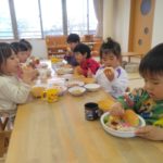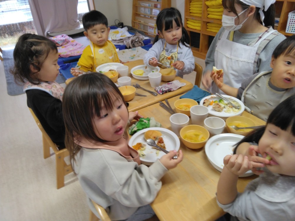 いちご、さくらんぼ、ばなな組さんもプレゼントをもらいました。めろん組さんが、サンタに扮して手伝ってくれましたね。