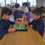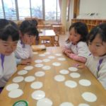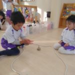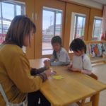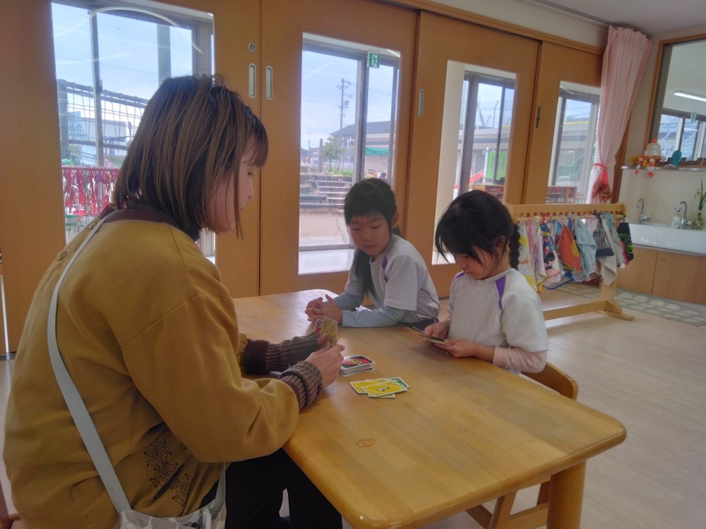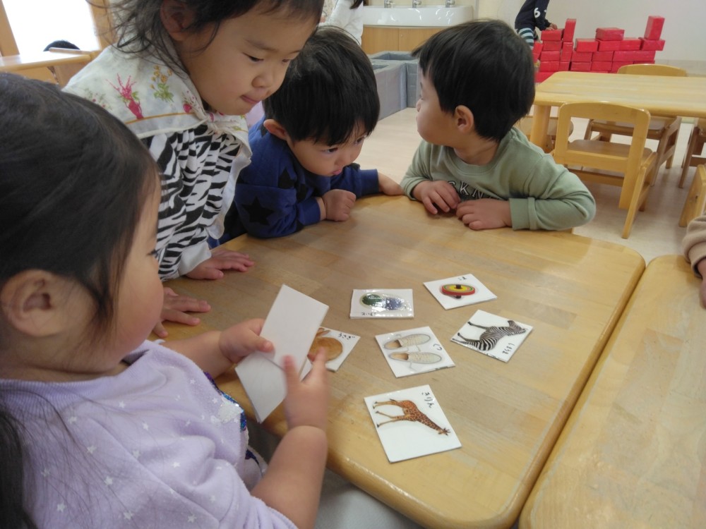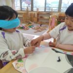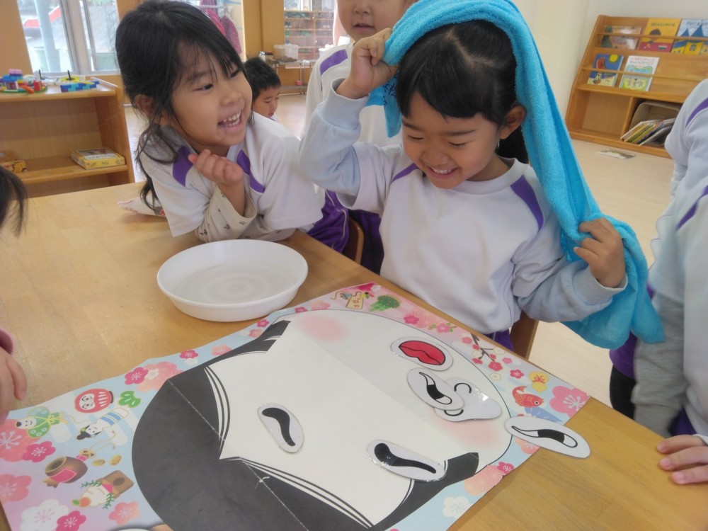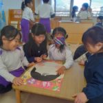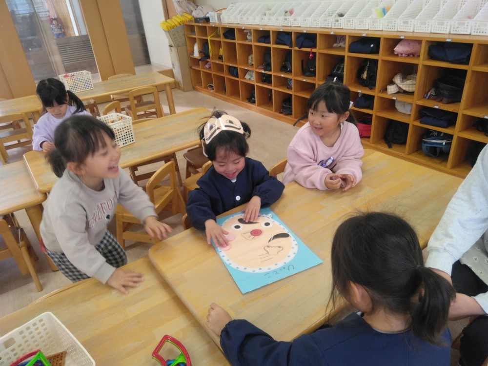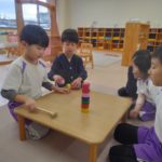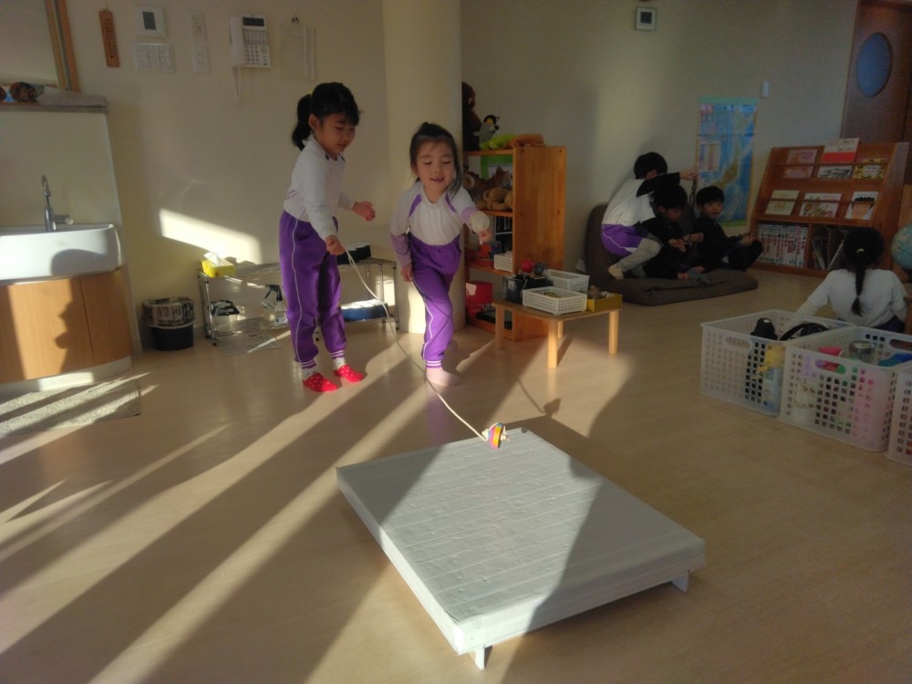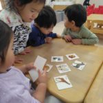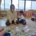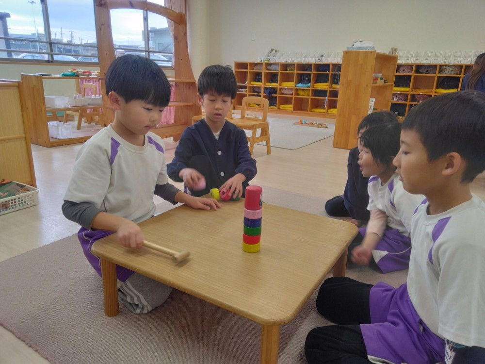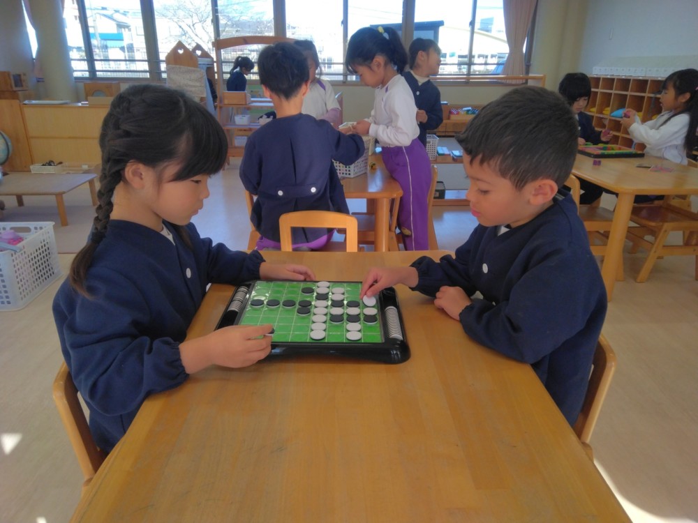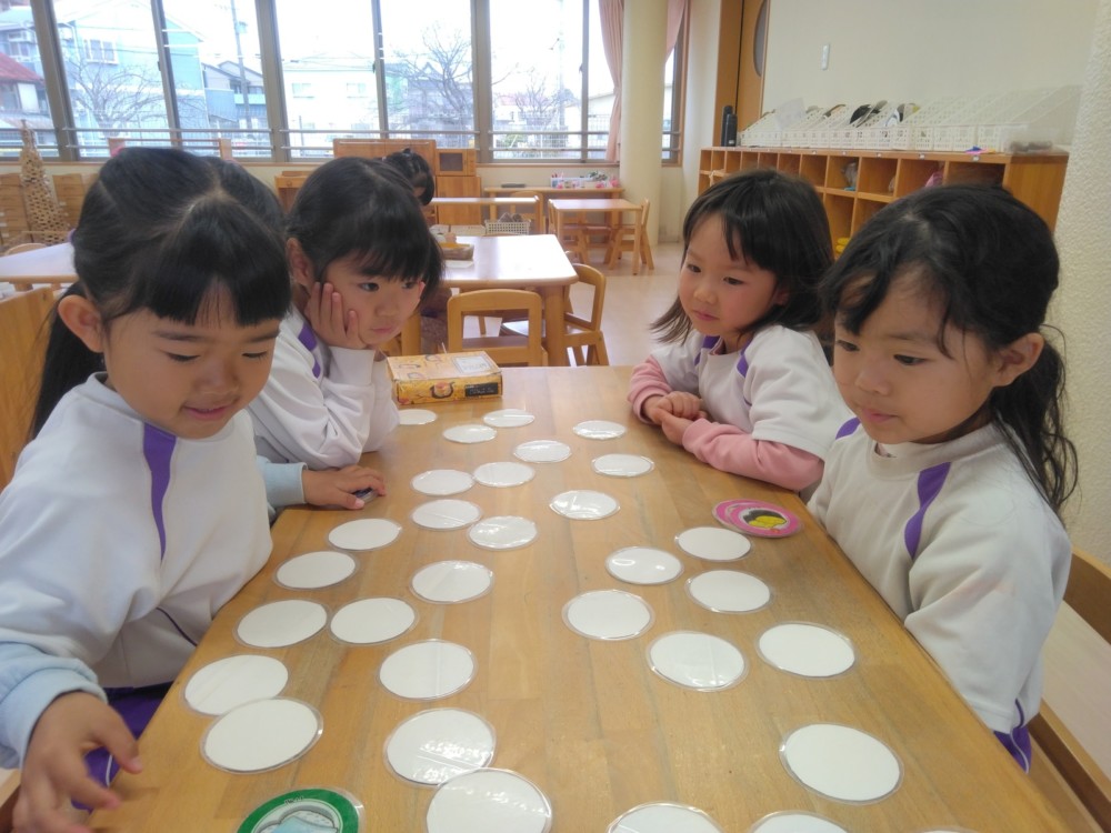 お正月遊び 2026年01月10日 冬休みが明け、1週間。子どもたちは、お正月遊びを楽しんでいます。 たこあげ、かるた、コマまわし、福笑い、すごろく、けん玉、だるま落とし…日本の伝統的な遊びや、ゲームを楽しんでいます。 寒い冬、お部屋の中でじっくりとルールのある遊びに取り組んでいます。