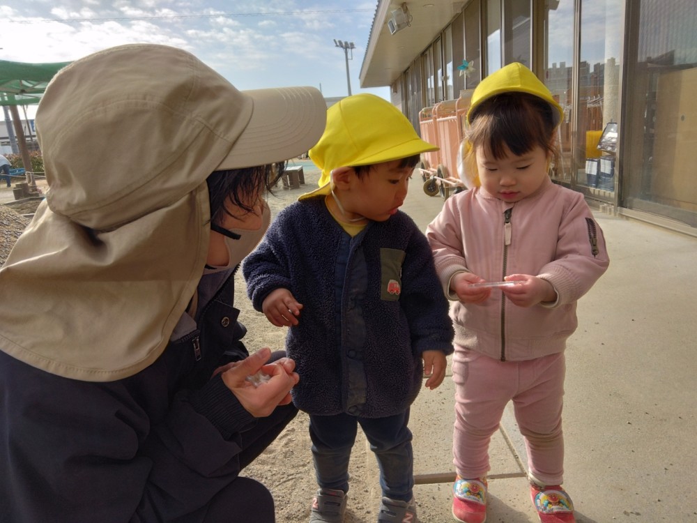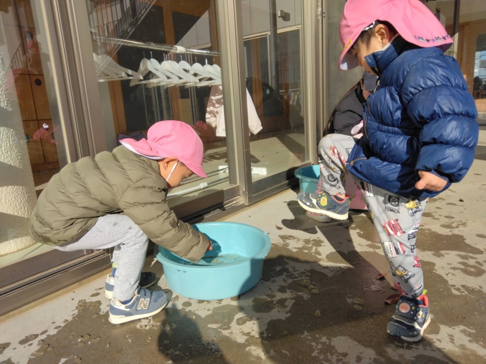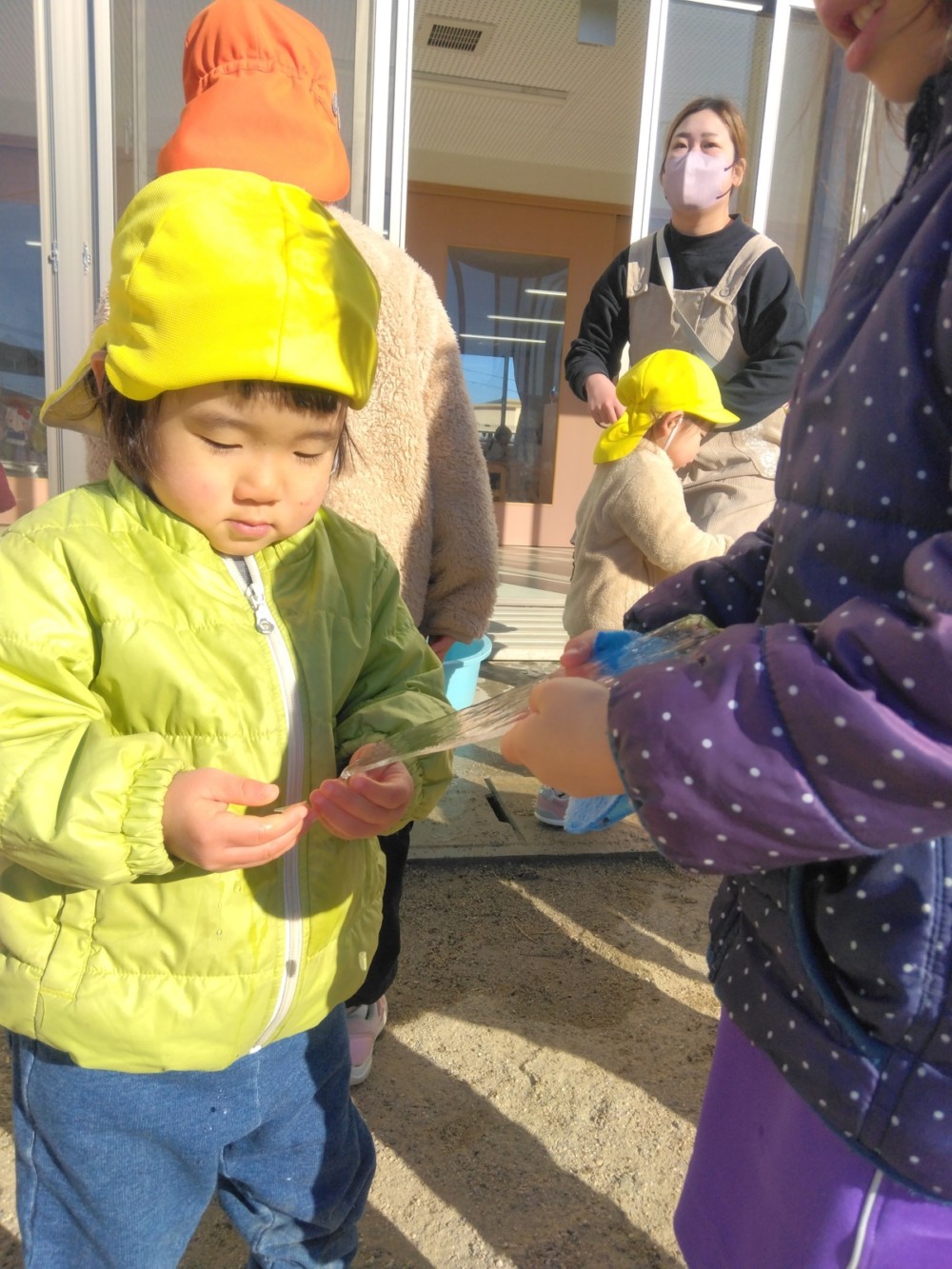 この冬、最強・最長の寒波。連日、氷点下で氷が張りました。もちろん、触ってみます。さぁ、どんな感じだったかな?