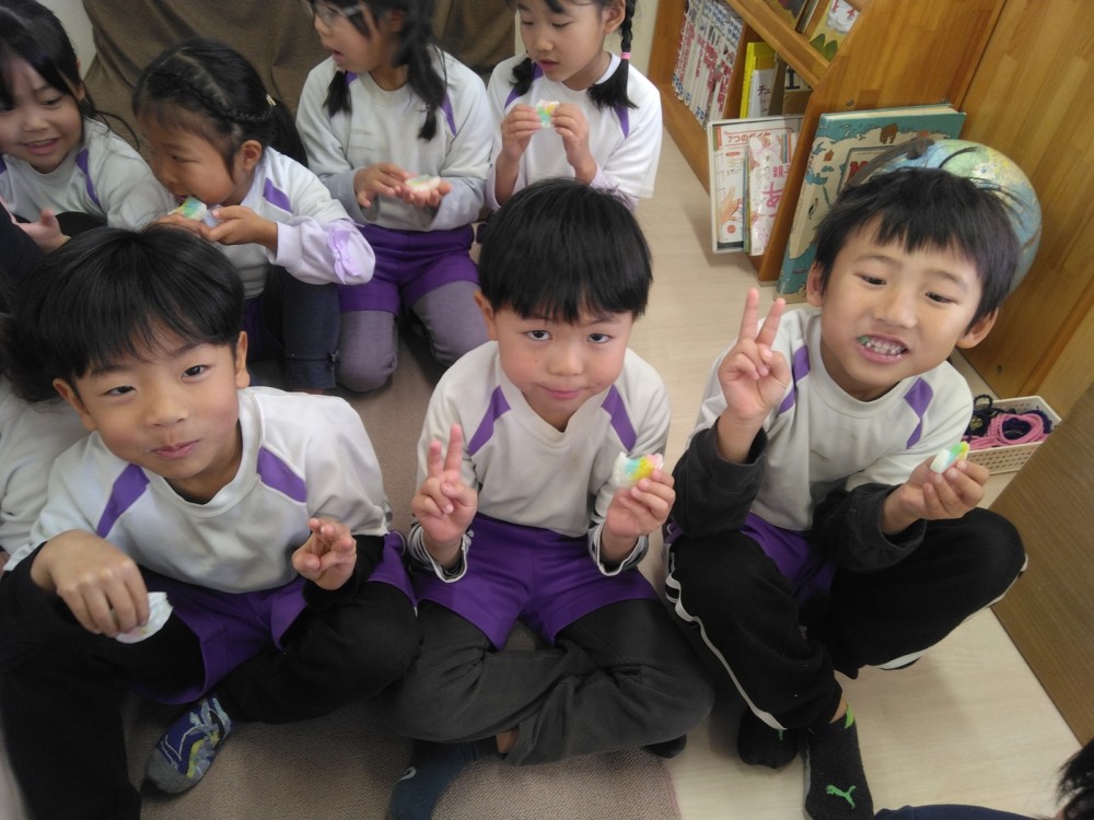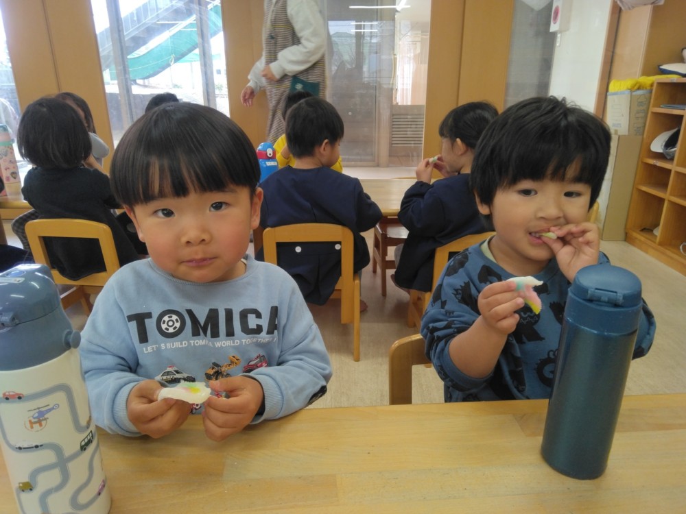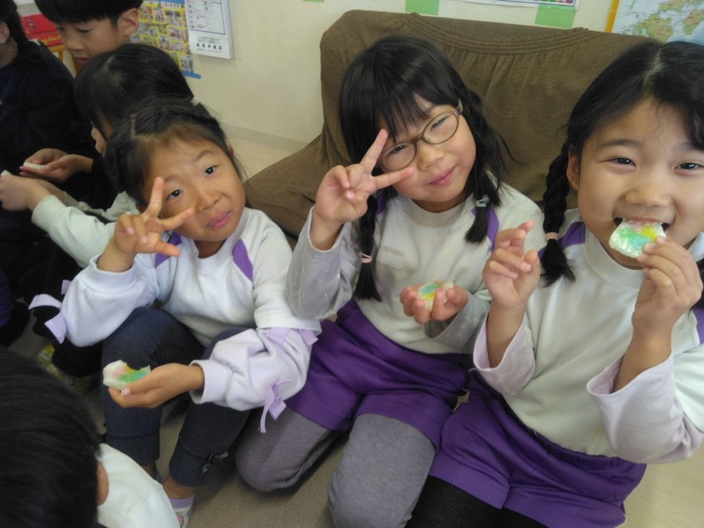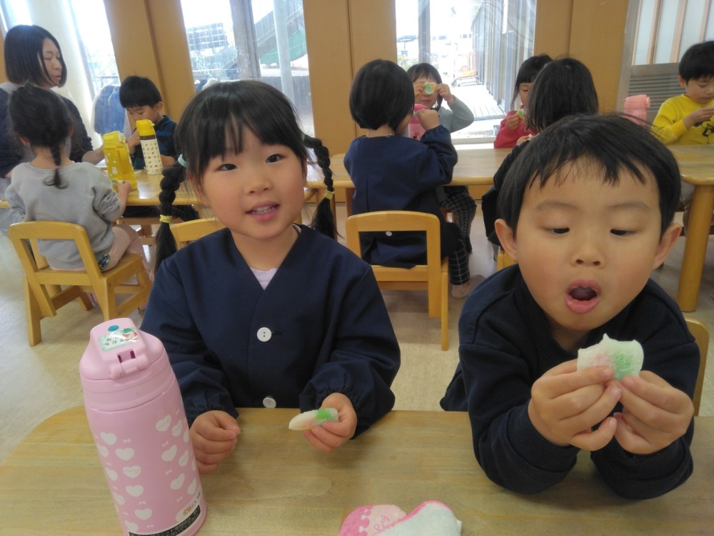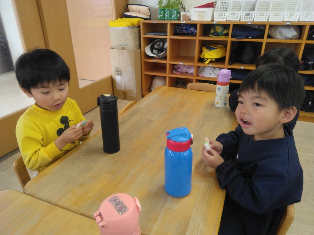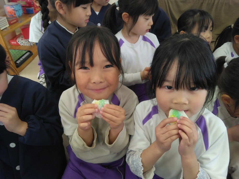 涅槃会のあとは、お部屋で花草団子(手作り)をいただきました。