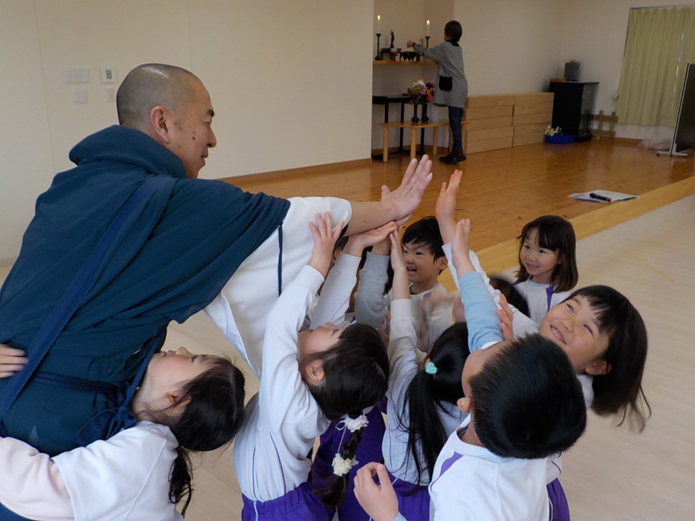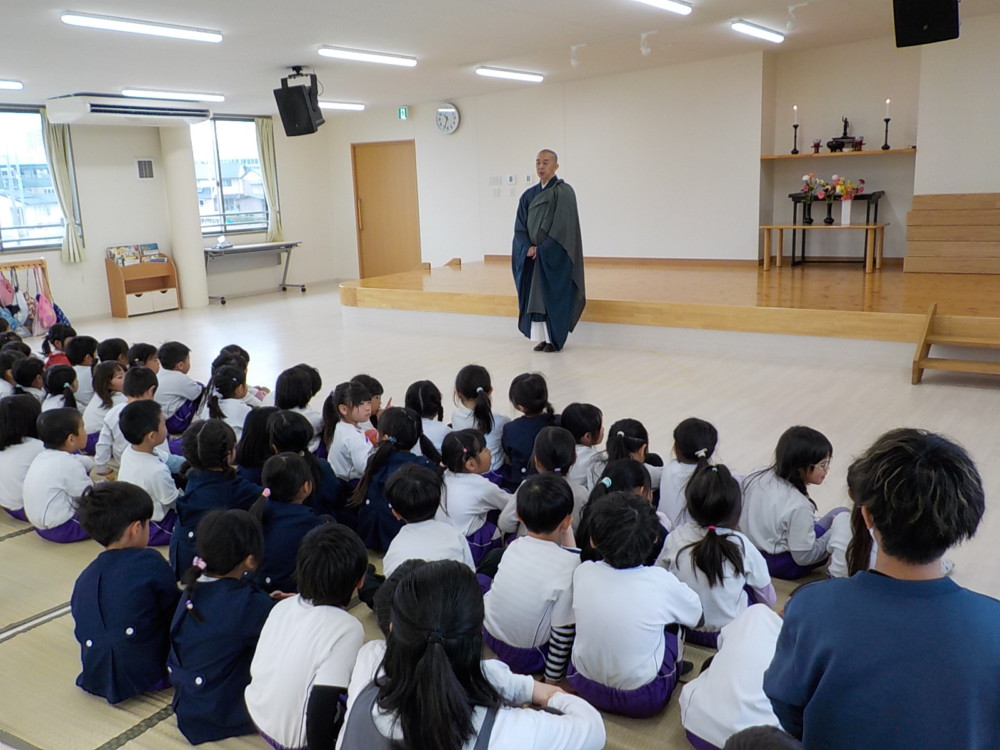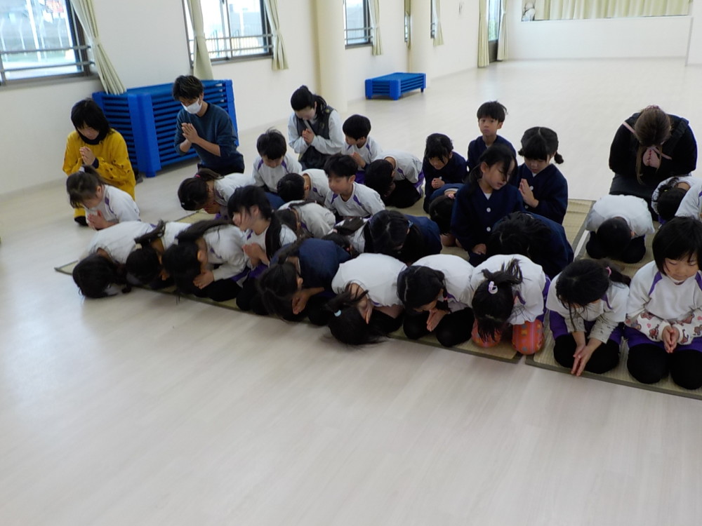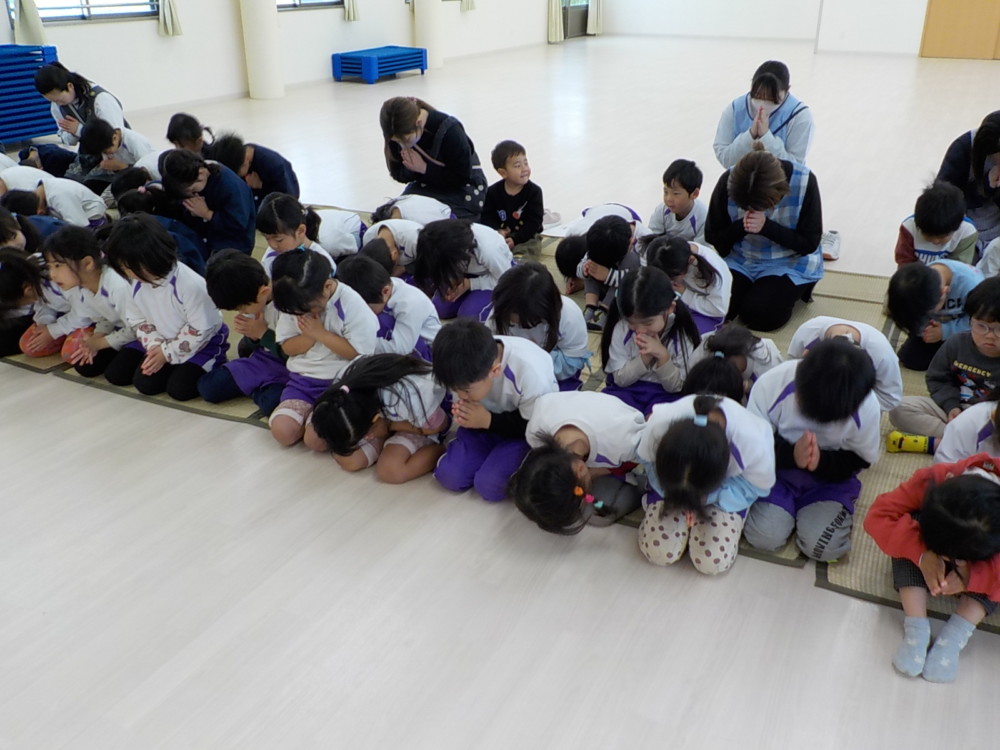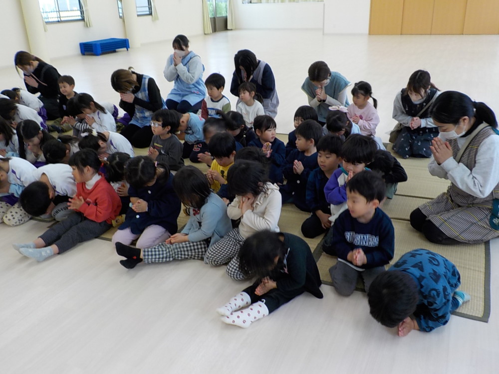 2月15日(日)涅槃会(ねはんえ)とは、お釈迦様が入滅された(亡くなられた)日に行われる法要(行事)のことです。あゆみ園では18日(火)におこなわれ、長昌寺のお坊さん(ルンビニこども園長)が来られました。