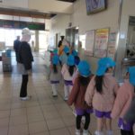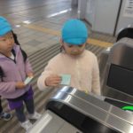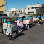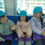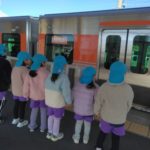 19日(木)めろん組さんは、山名幼稚園の年長児みず組さん、あお組さん、愛野こども園の年長児あお1組さん、あお2組さん、愛ノ宮保育園の年長児らいおん組さんと一緒に愛野こども園で交流保育をおこないました。120名近くの年長児さんが集まりました。そして、なんと今回は、電車に乗って愛野駅を往復です。一区間ですが、ドキドキ、ワクワク嬉しいですね。