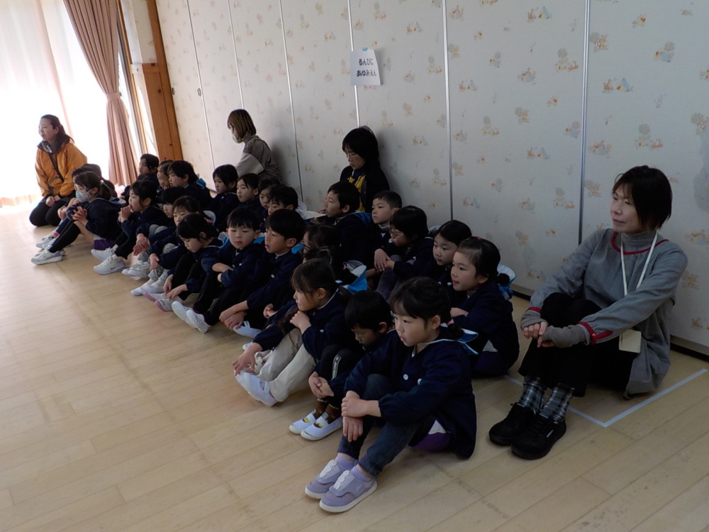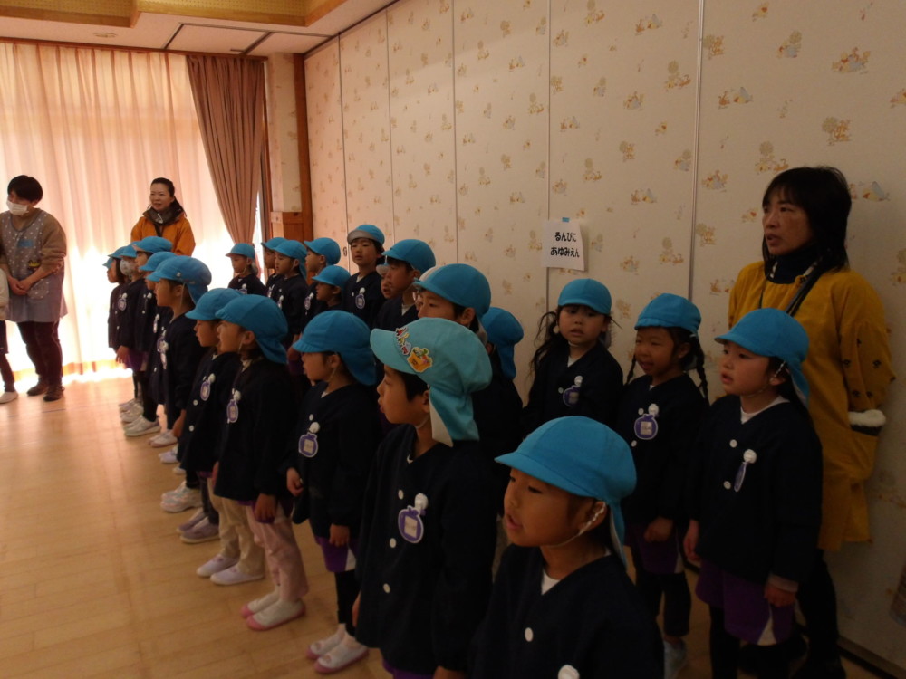愛野こども園では、小学校ごとのグループを作ってお話をしたり、園庭で同じ小学校へ行く友だちと遊んだりしました。最後は遊戯室で「一年生になったら」をみんなで歌ってお別れしました。また小学校で遊ぼうね。