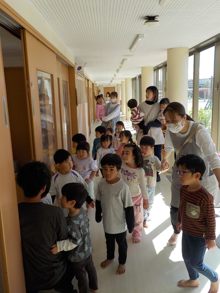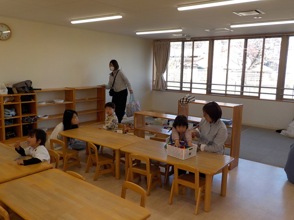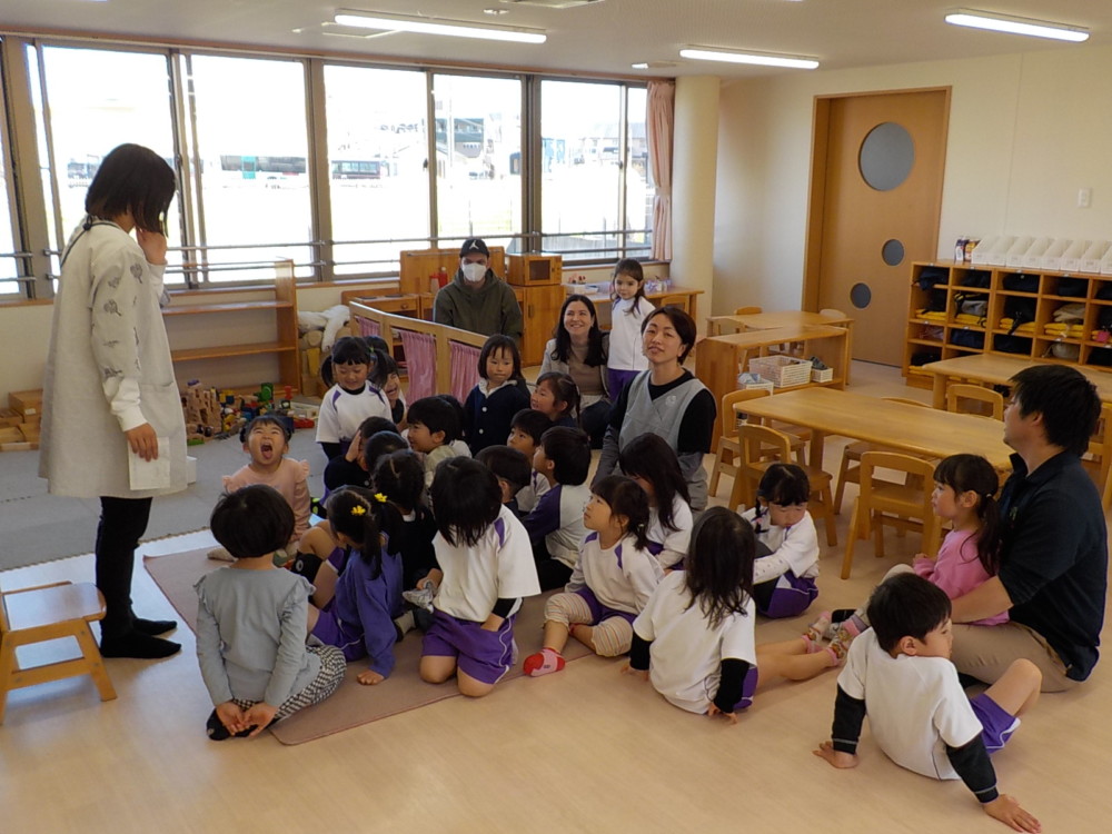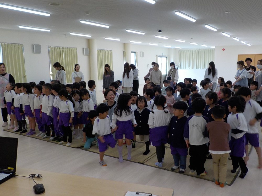 令和8年度スタート! 2026年04月02日 4月2日(木) 令和8年度の保育がスタートしました。今日から、進級児は通常保育、新入園児は親子で慣らし保育開始です。 ぶどう組、みかん組、めろん組は遊戯室で始業式。先生や、新しい友達の紹介です。令和7年度一年間の様子をスライドショーで見て、歓声があがります。今年もいっぱい遊ぼうね! 初日、新入園児は保護者の方と一緒に過ごしたことで、「ここは安心できる場所」「楽しい場所」と、少しでも認識できたことと思います。一年間よろしくお願いします。