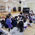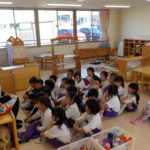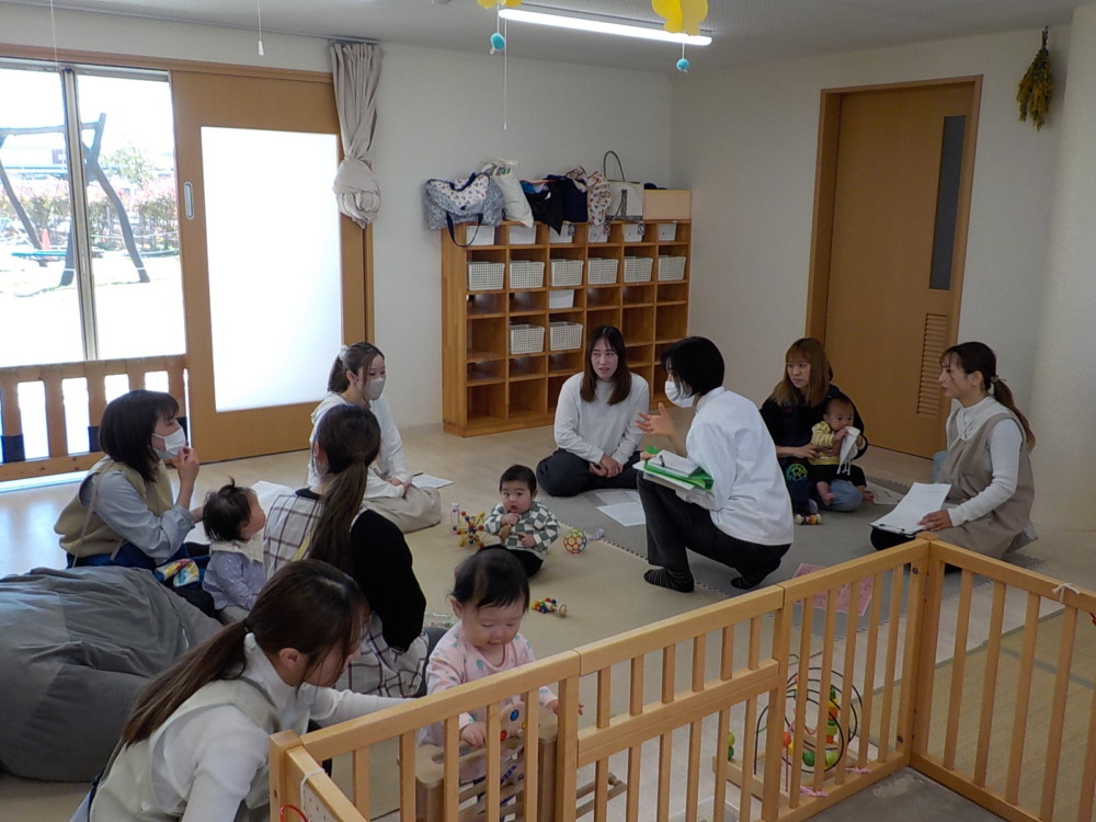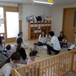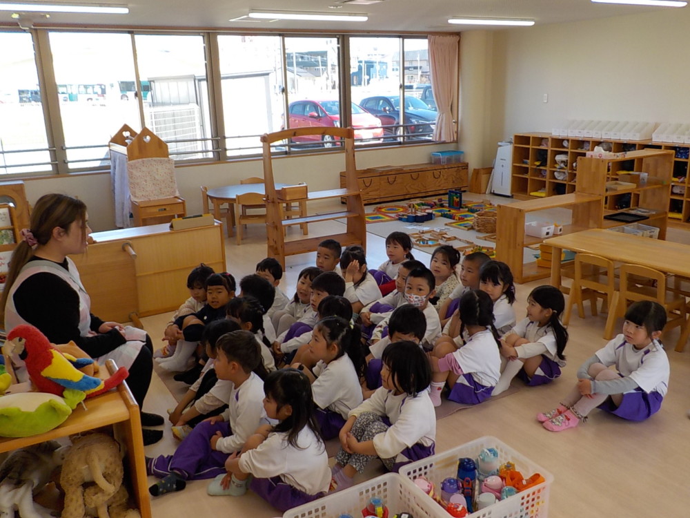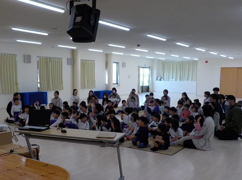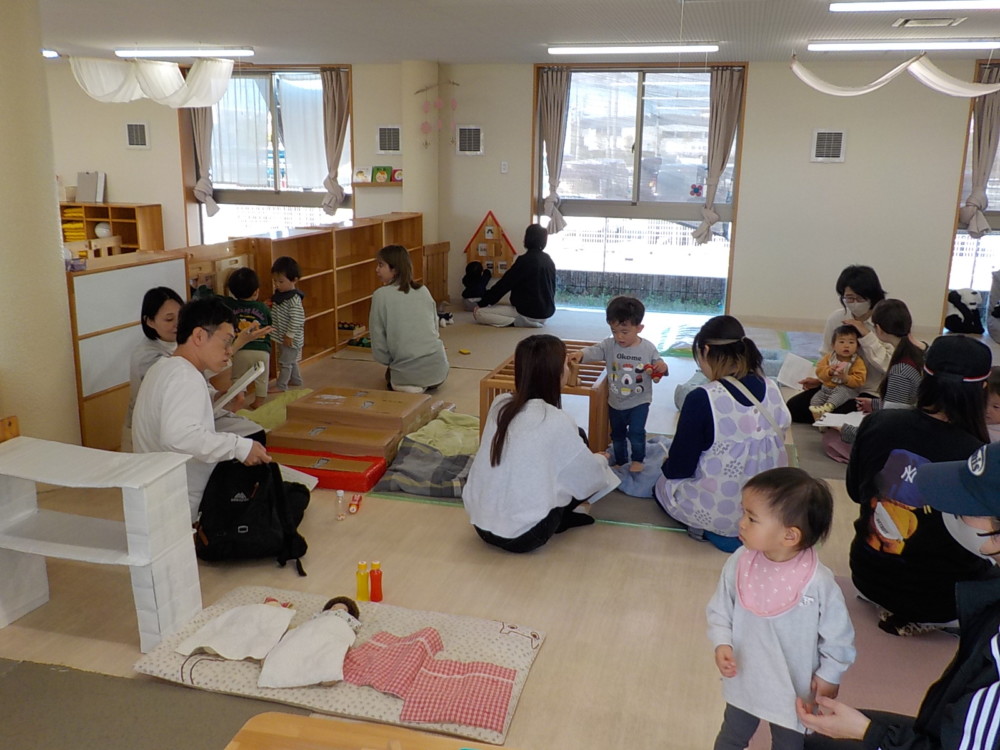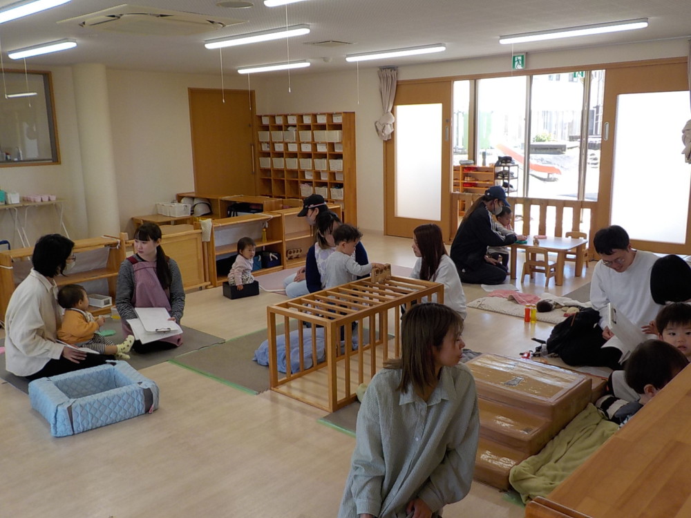 令和8年度スタート! 2026年04月02日 4月2日(木) 令和8年度の保育がスタートしました。今日から、進級児は通常保育、新入園児は親子で慣らし保育開始です。 ぶどう組、みかん組、めろん組は遊戯室で始業式。先生や、新しい友達の紹介です。令和7年度一年間の様子をスライドショーで見て、歓声があがります。今年もいっぱい遊ぼうね! 初日、新入園児は保護者の方と一緒に過ごしたことで、「ここは安心できる場所」「楽しい場所」と、少しでも認識できたことと思います。一年間よろしくお願いします。