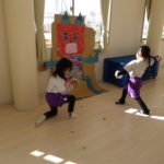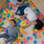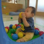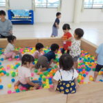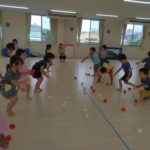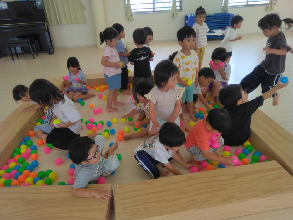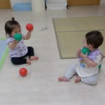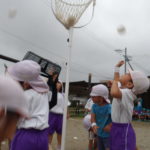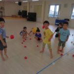 1,2歳児の頃。自分で物をつかみ、物を投げたら遠くまで飛んでいく。物が飛んでいく様子や落ちたときの音、大人の反応など、すべてが面白い体験です。投げるという行動自体を楽しむ時期です。しかし、身の回りには投げられては困るものもたくさんあります。そこで、子どもが「投げたい欲求」を満たせる遊びや環境を用意していきます。そこで、つかめる大きさのボール、新聞紙を丸めたものなどの出番です。遠くに飛ばすには、それなりの重さや固さが必要になります。運動会での玉入れでは、投げる角度、力の加減。そういった細かいことも必要になります。(粗大あそび)